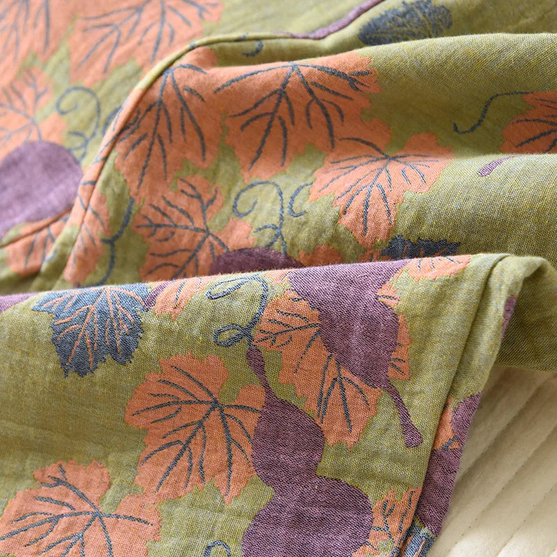 Please note that gauze and crepe fabrics may experience slight shrinkage of about 1-3 cm. To maintain the quality of your pajama set, we recommend hand washing in cool water instead of using a washing machine. Indulge in the ultimate comfort and relaxation with our Cotton Leaf Pattern Long Sleeve Shirt and Trousers Pajama Set.