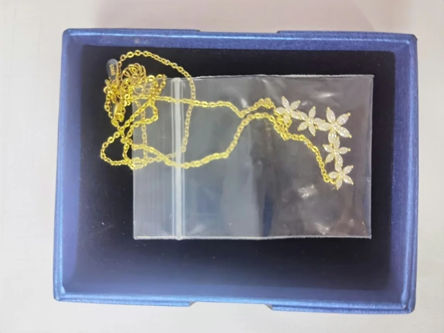 So very pretty was just as described. The box it came in is amazing. Almost as nice as the necklace.