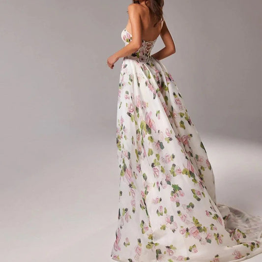 Strapless Sequin Floral Long Dress – Ankle-Length Gown