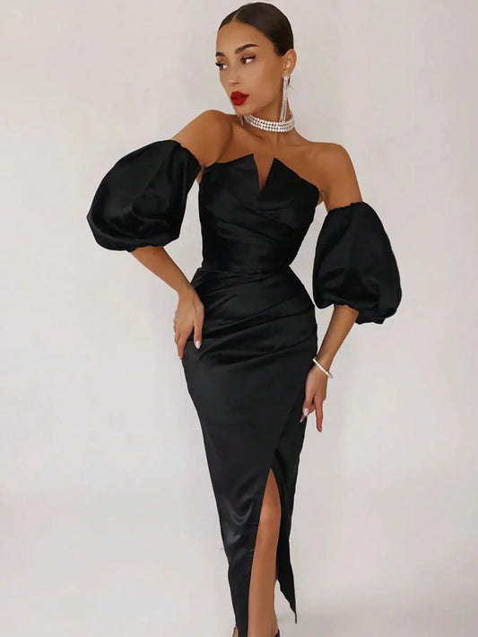 Strapless Black-tie Sheath Dress with Removable Puff Sleeves