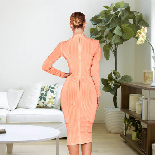 Light Coral Long Sleeve Midi Bandage Pencil Dress