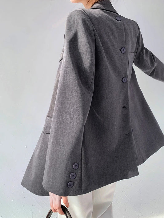 Women's Back Buttons Gray Blazer