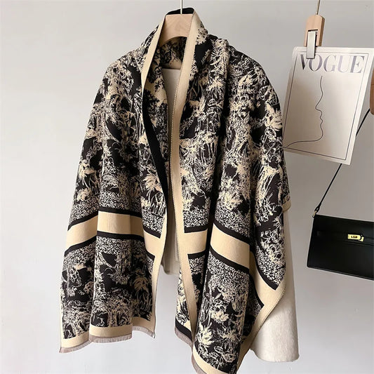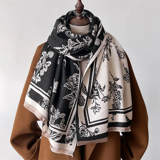 Luxury Floral Cashmere Double-Sided Pashmina Scarf