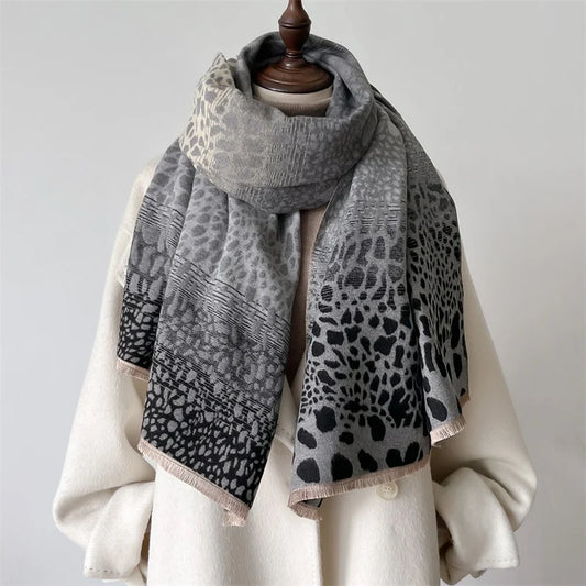 Luxury Double-Sided Cashmere Leopard Print Pashmina Scarf