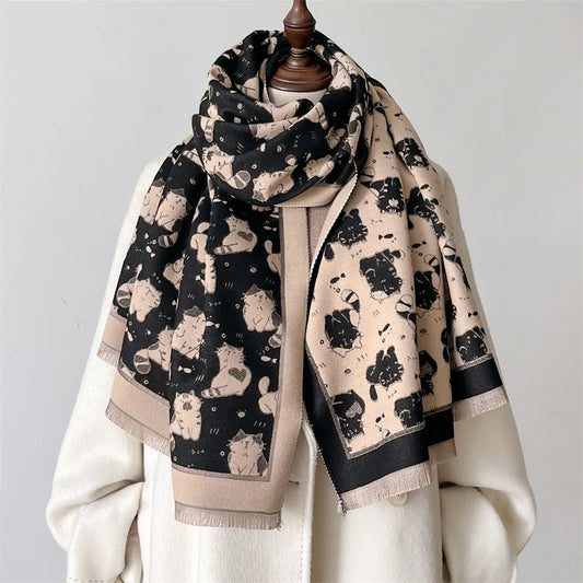 Luxury Cat Pattern Double-sided Pashmina Scarf