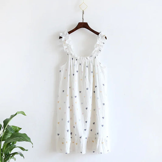 Round Neckline Sleepshirt Short Sleeve Nightgowns Gauze Cotton Nightdress