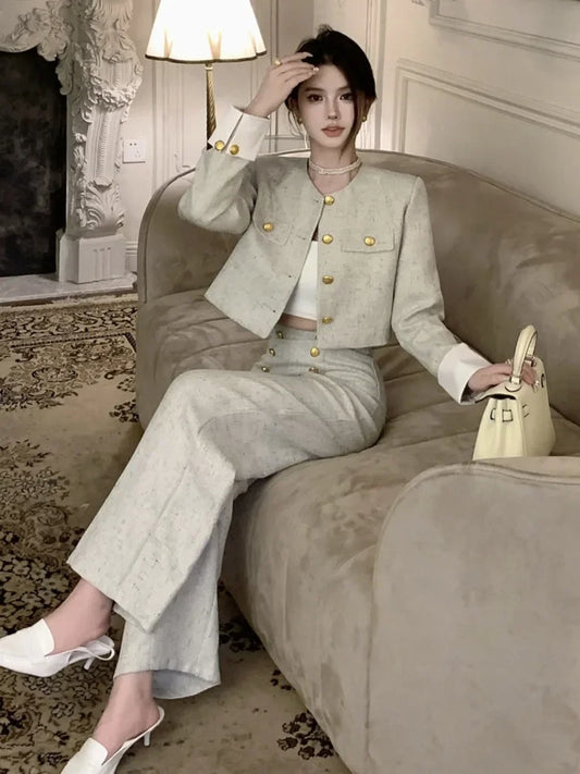 Women’s Cropped Jacket & Wide Leg Trousers Suit