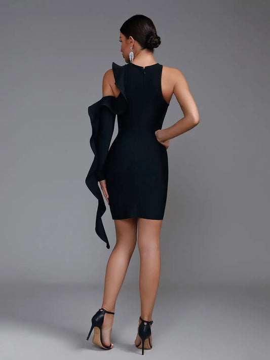 Sleeveless Ruffle Details Asymmetrical Length Dress
