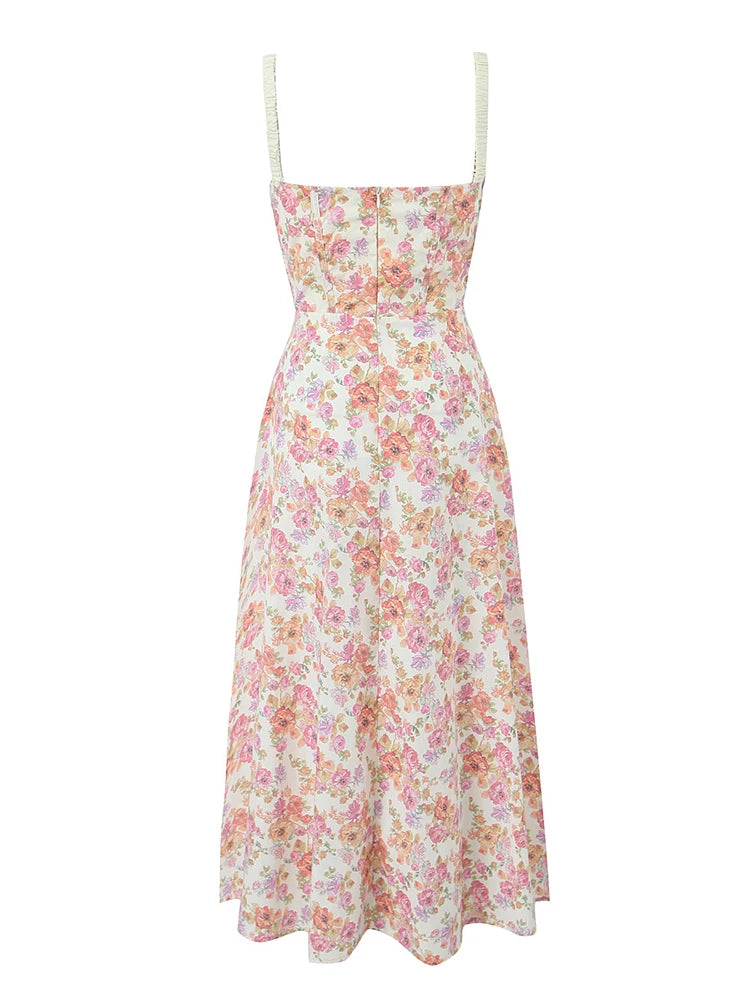 Bloom into the Spotlight: The Floral Print Square Neckline A-Line Maxi Dress