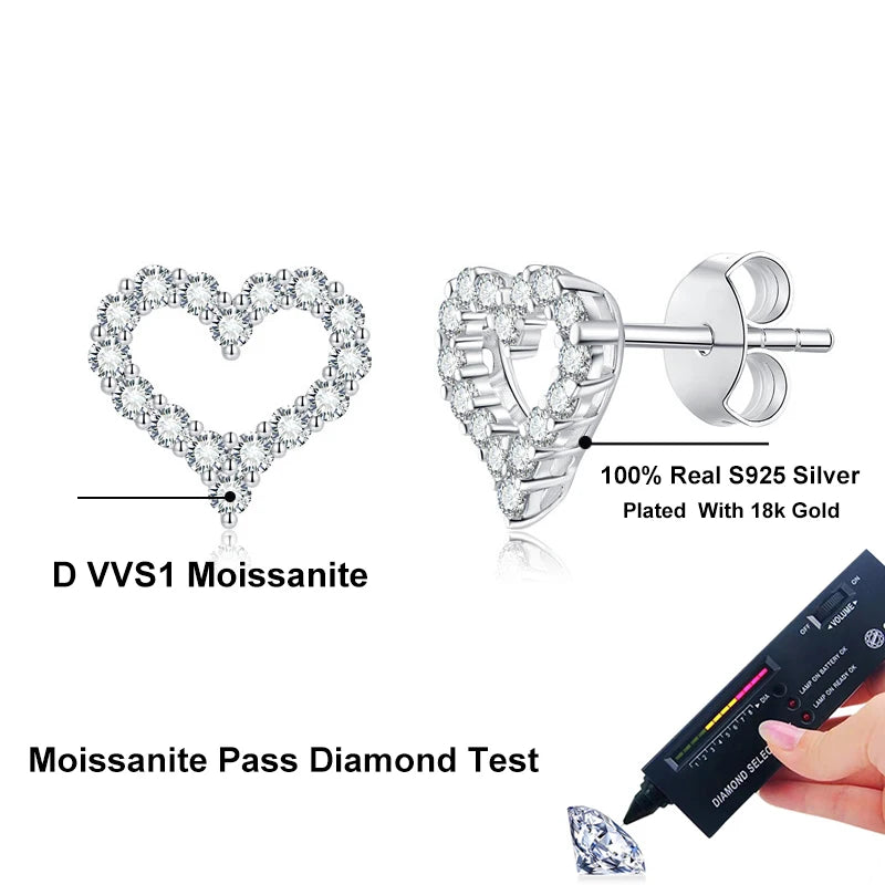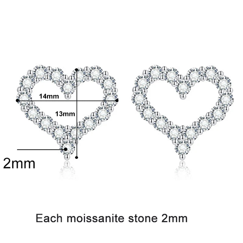 Heart Shape Moissanite Stud Earrings - Valentine's Day Gift