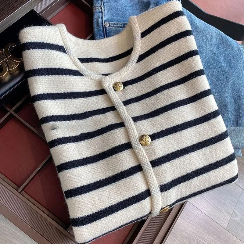 Our Striped Knitted Sweater Cardigan is not just a fashion statement; it's designed for comfort and style. The intricate knit pattern is both eye-catching and warm, ensuring that you stay snug and fashionable during the colder months.