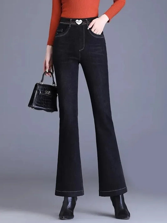 Winter Velvet Lined Thermal Denim Boot Cut Trousers