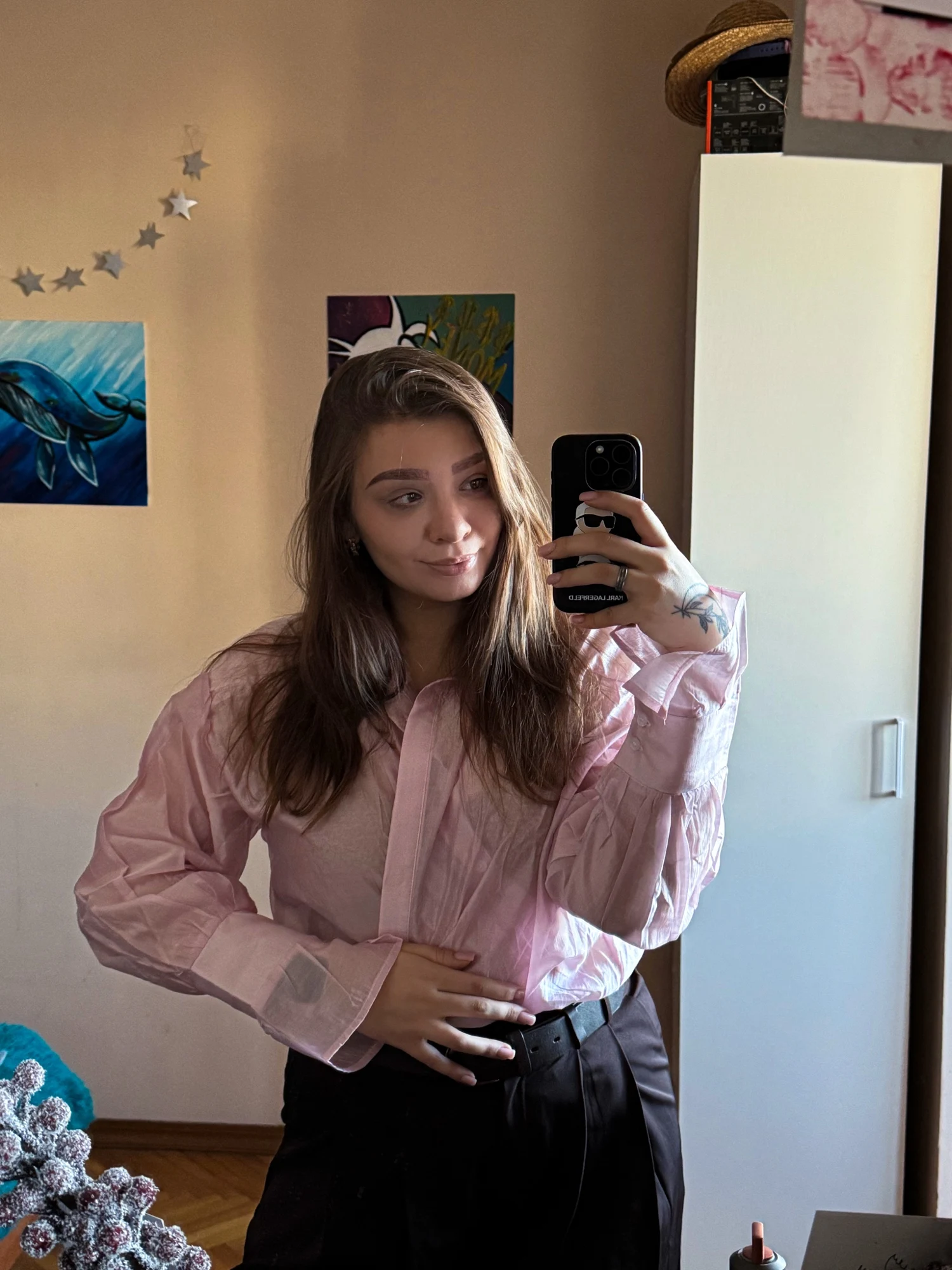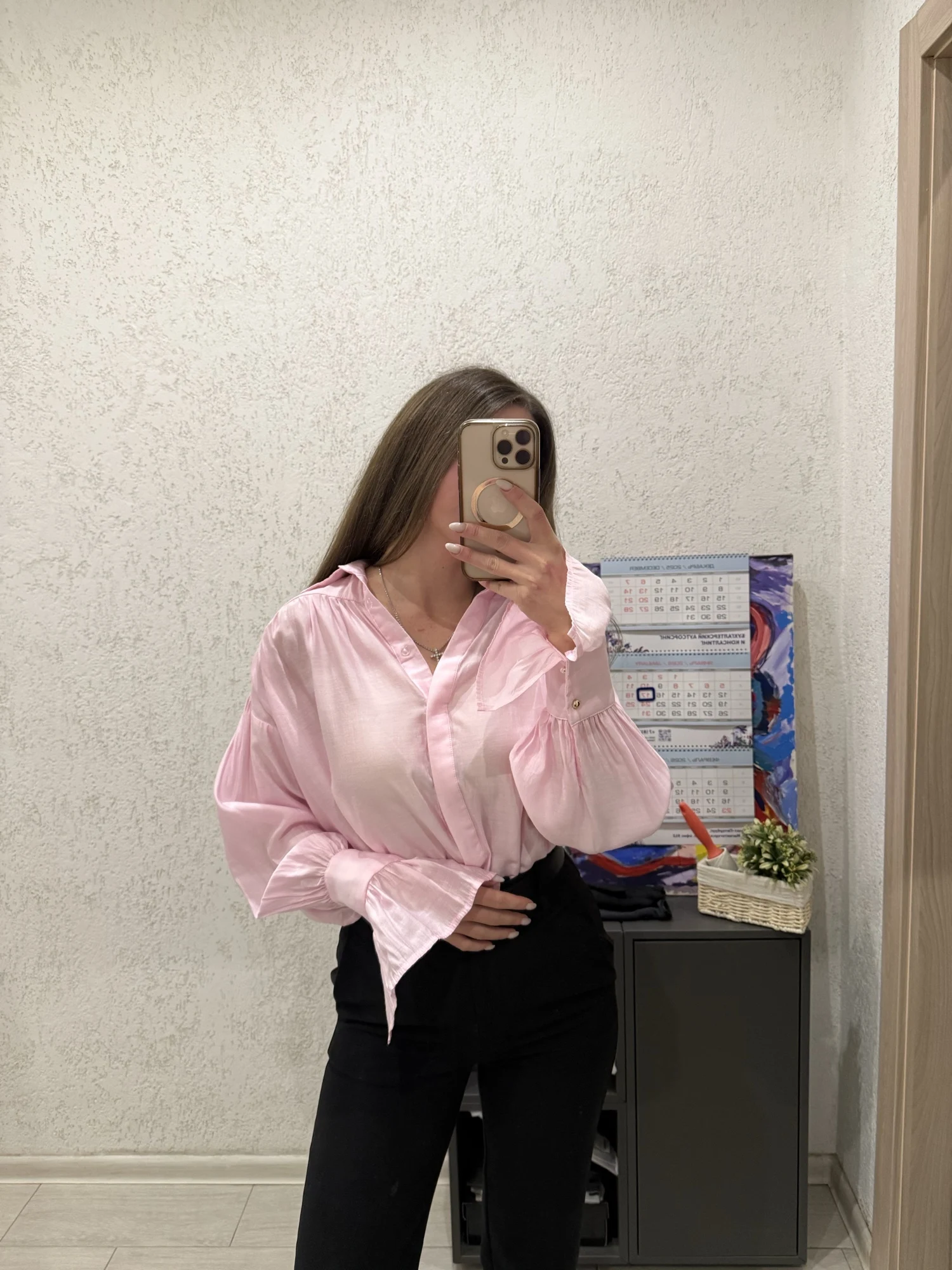 I'm happy with the shirt, bought it for 1000₽, I wear size S (height 164 cm). No need for a larger size. Delivery took 7 weeks. It will look good with jeans and trousers.