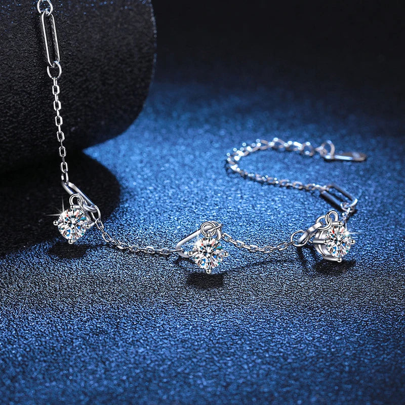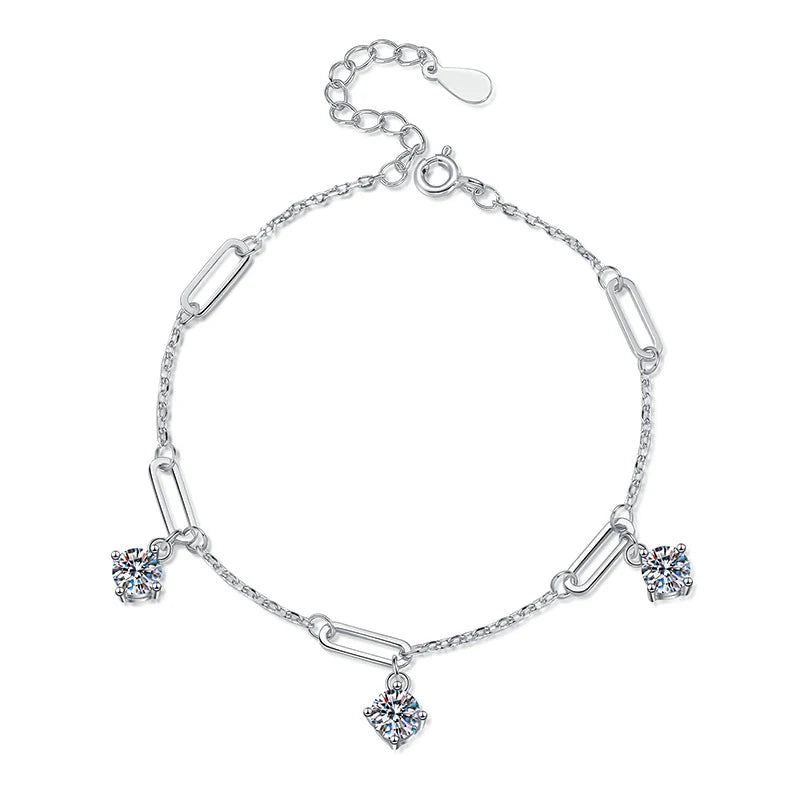 1.5CT Moissanite 3-Charms Bracelet – Elegant Gift for Her