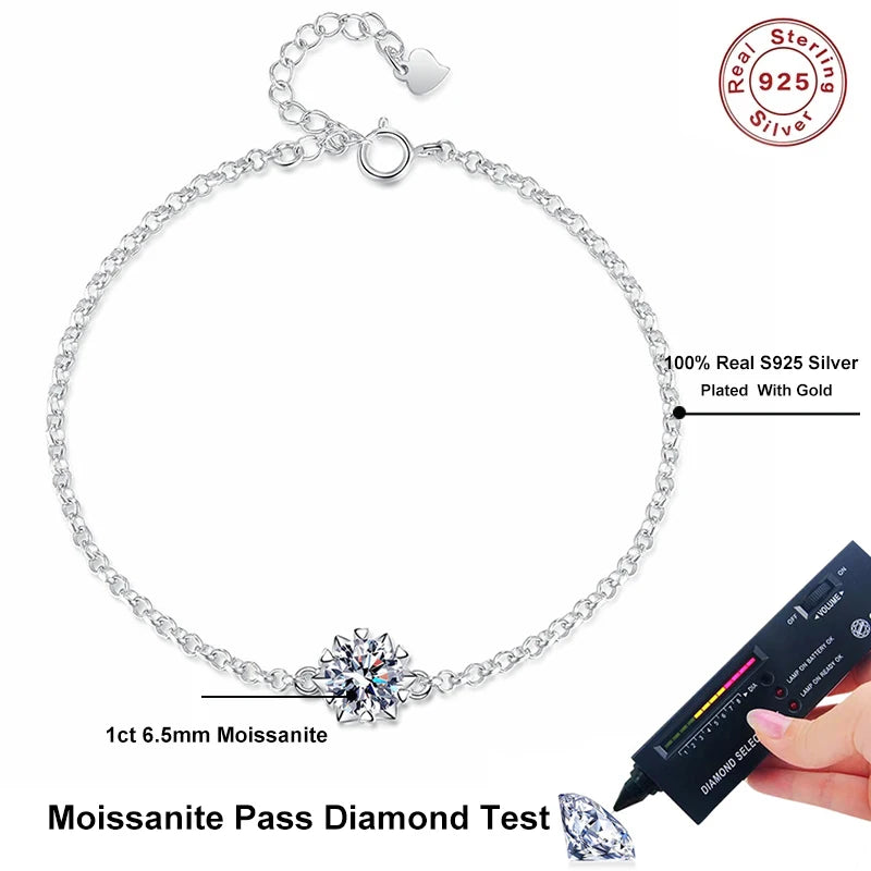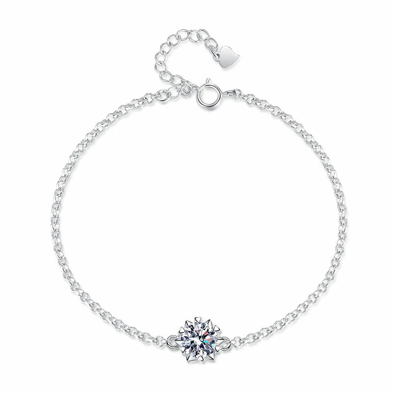 Minimalist in design, maximum in brilliance — our 1 Carat Moissanite Chain Bracelet is the epitome of modern elegance. Featuring a stunning 6.5mm round-cut Moissanite at its center, this sleek bracelet is expertly crafted with a delicate chain, offering both simplicity and luxury in one timeless piece.