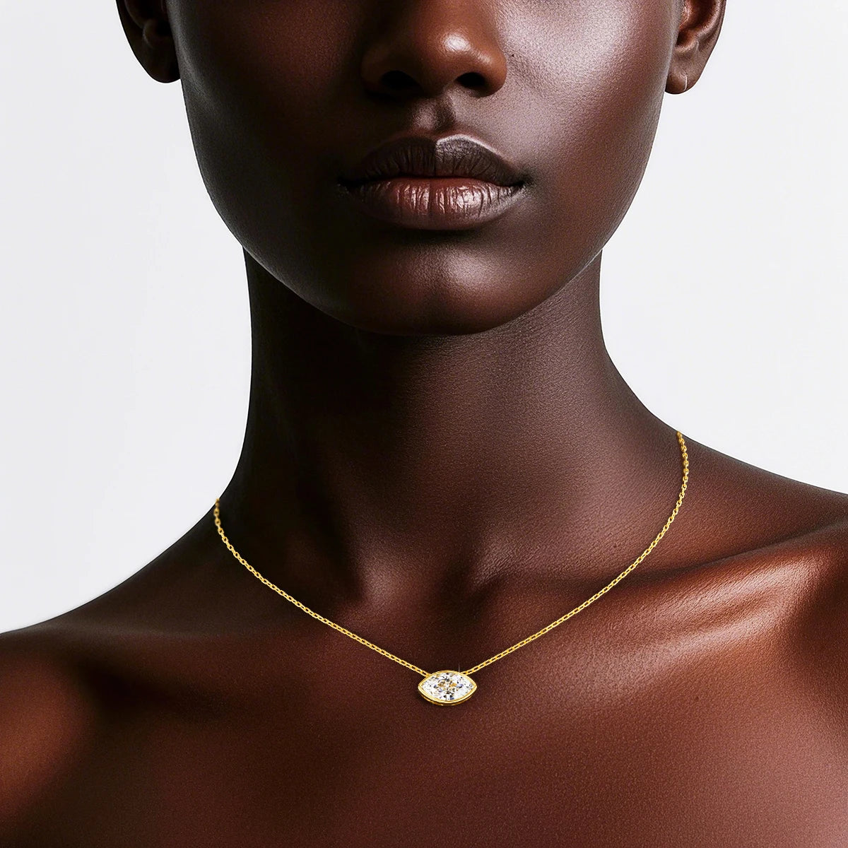 100% 14K Gold Marquise Cut Moissanite Pendant Necklace