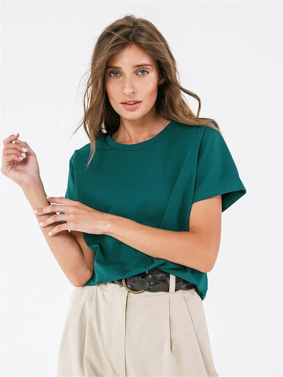 • Accessorize: Add a statement necklace or scarf to elevate the simplicity of the tee.