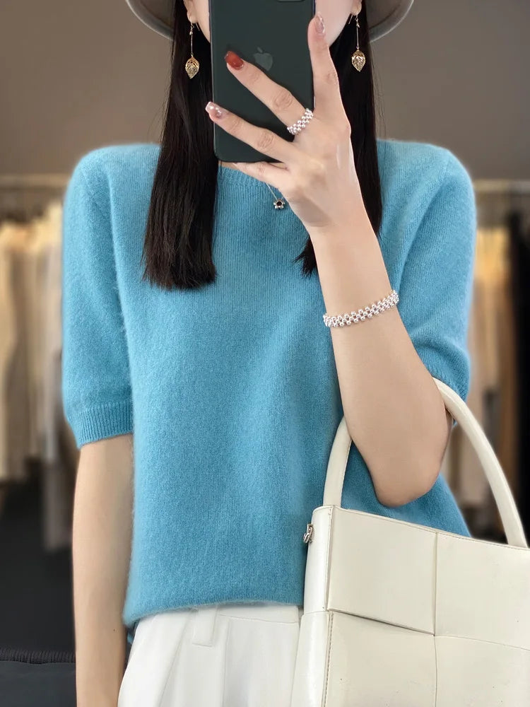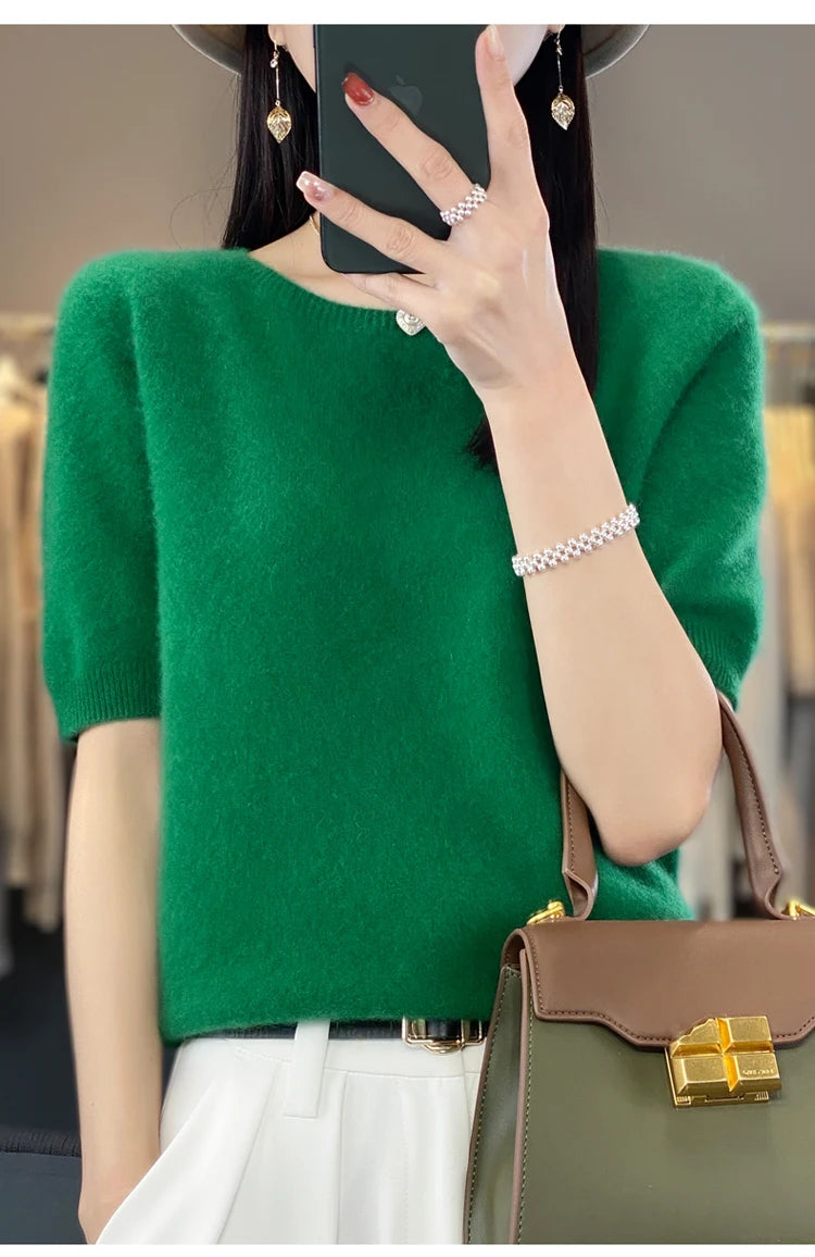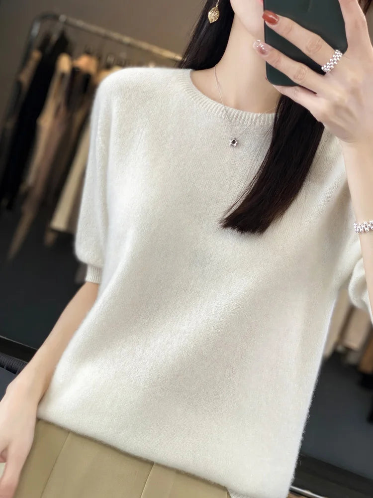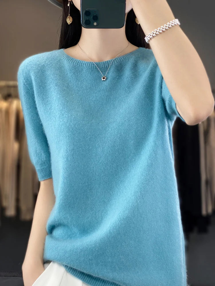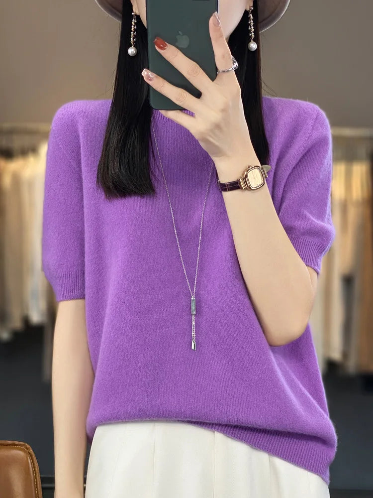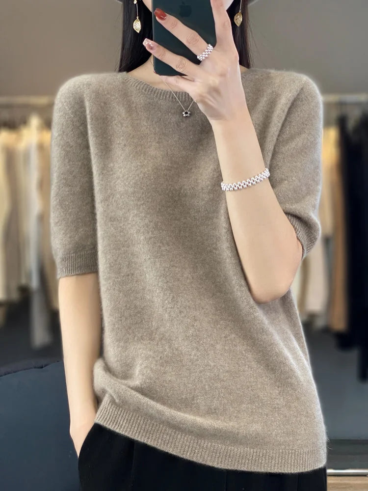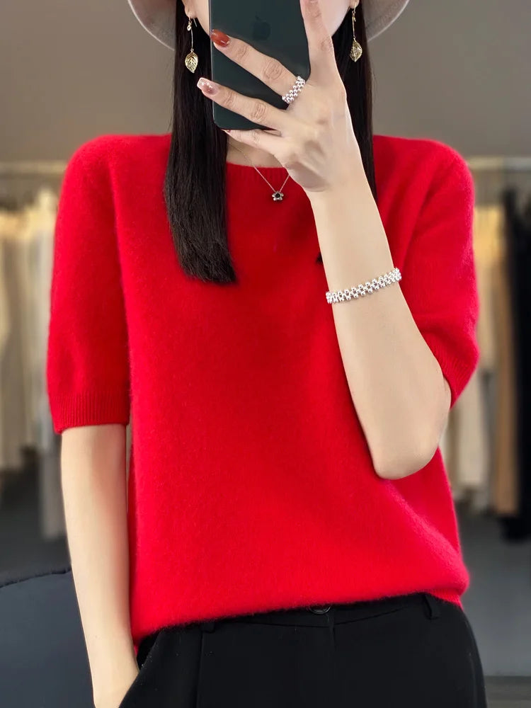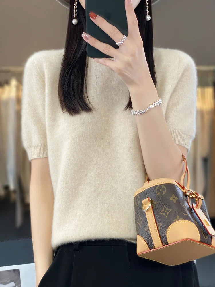 Crafted from 100% Australian Extrafine Merino Wool, this premium knit tee combines softness, warmth, and elegance in one timeless design.