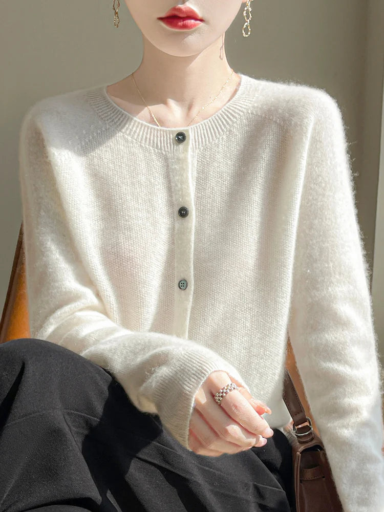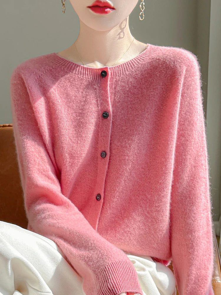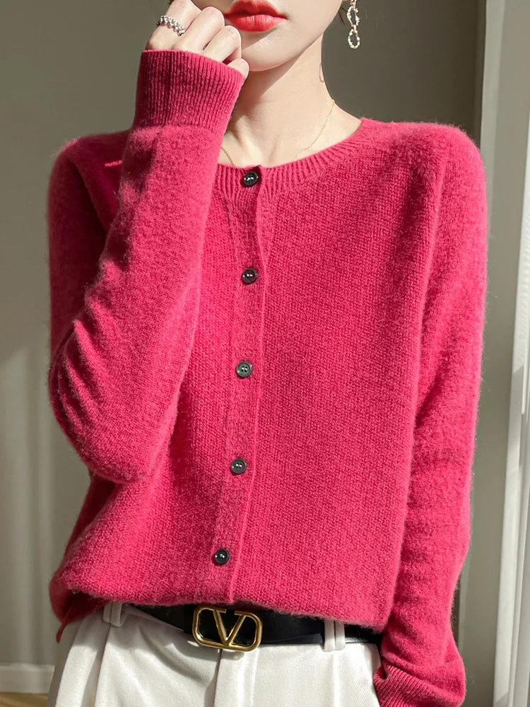 Featuring a regular fit, O-neck collar, and button-down front, this versatile cardigan transitions seamlessly from workwear to casual layering. The 17.9-micron superfine wool ensures a buttery-soft texture against the skin—far from the itchiness of traditional wool.
