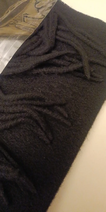 Very pretty. It feels like pure wool, really nice. It is quite thin, but that is expected for the price. Looking forward to wear it outside to see how warm it is.