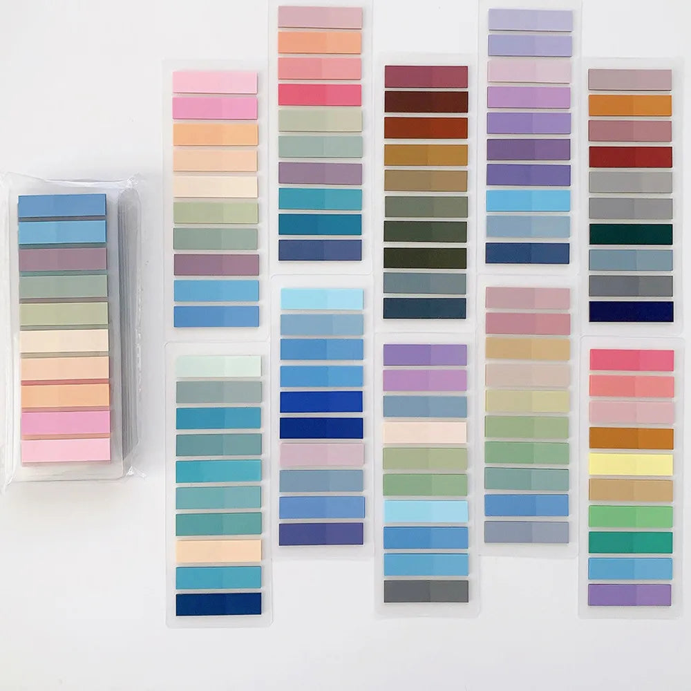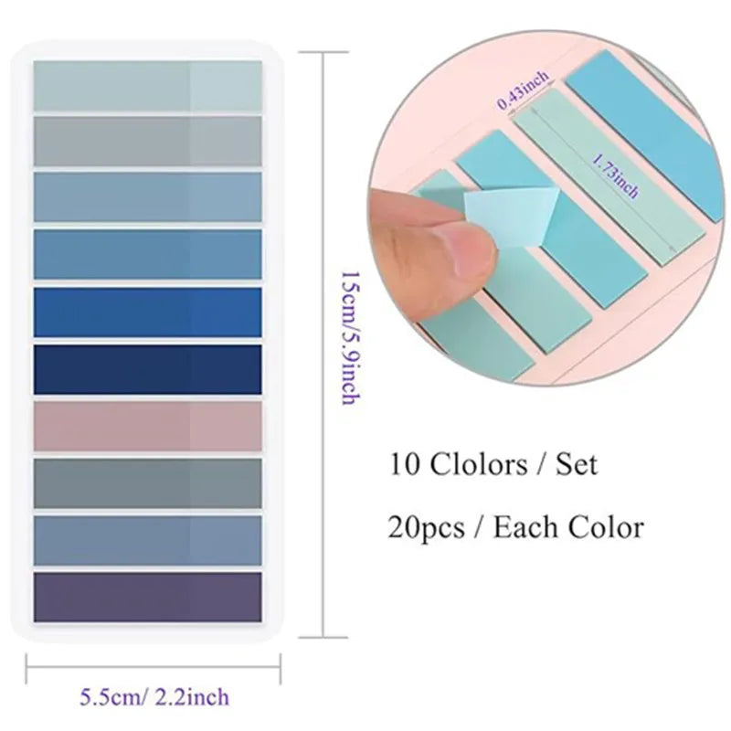 Elevate your organizational game with our 11200 Sheets of Transparent Sticky Notes, conveniently packed in 56 sets. Each pack contains 200 sheets (10 colors, 20 sheets per color), each measuring 1.1 x 4.5 cm with a paste area of 1.1 x 2.5 cm. These self-adhesive bookmarks are ideal for clear marking and classification, allowing for repeated sticking and easy removal without damaging paper.