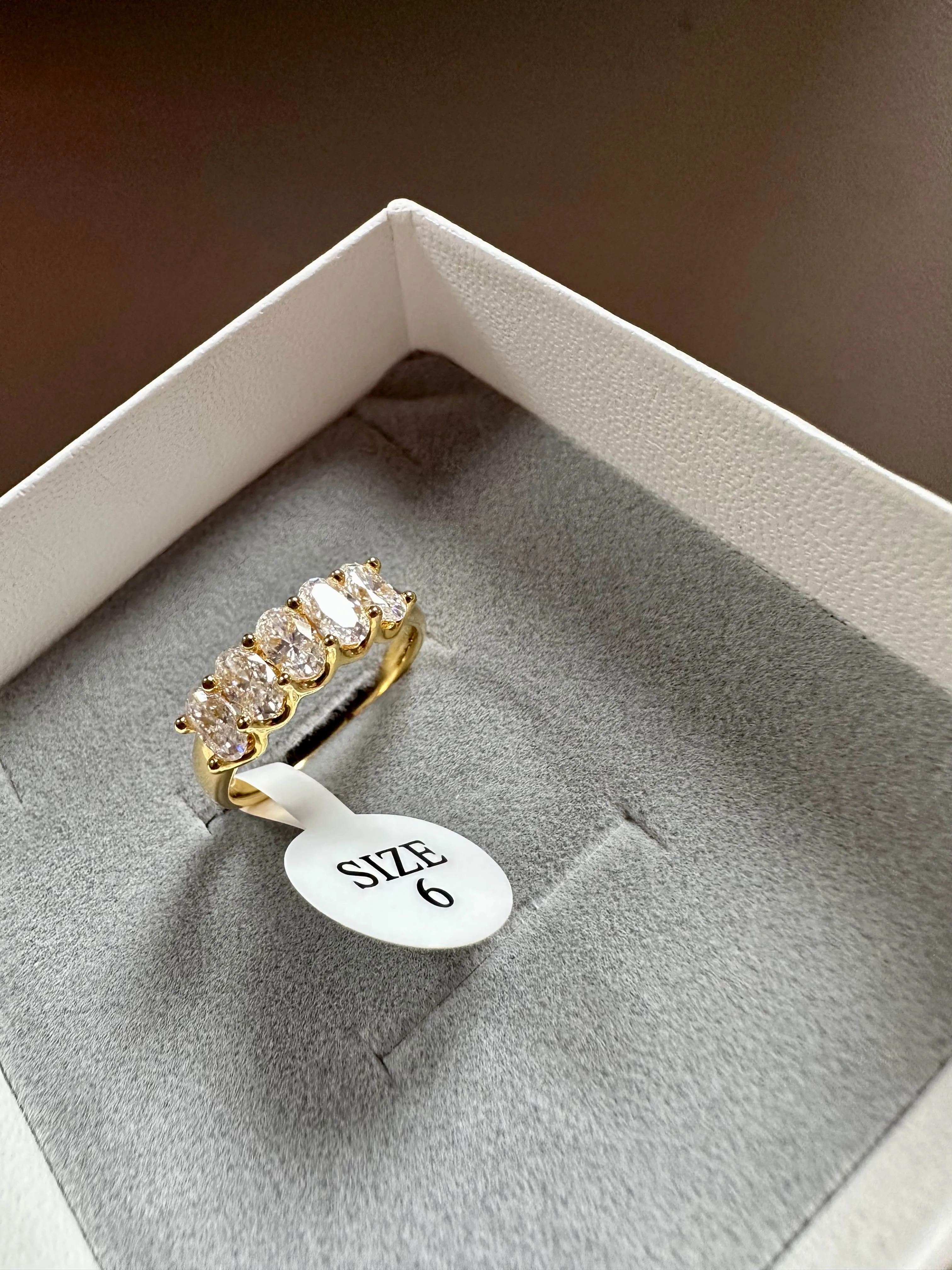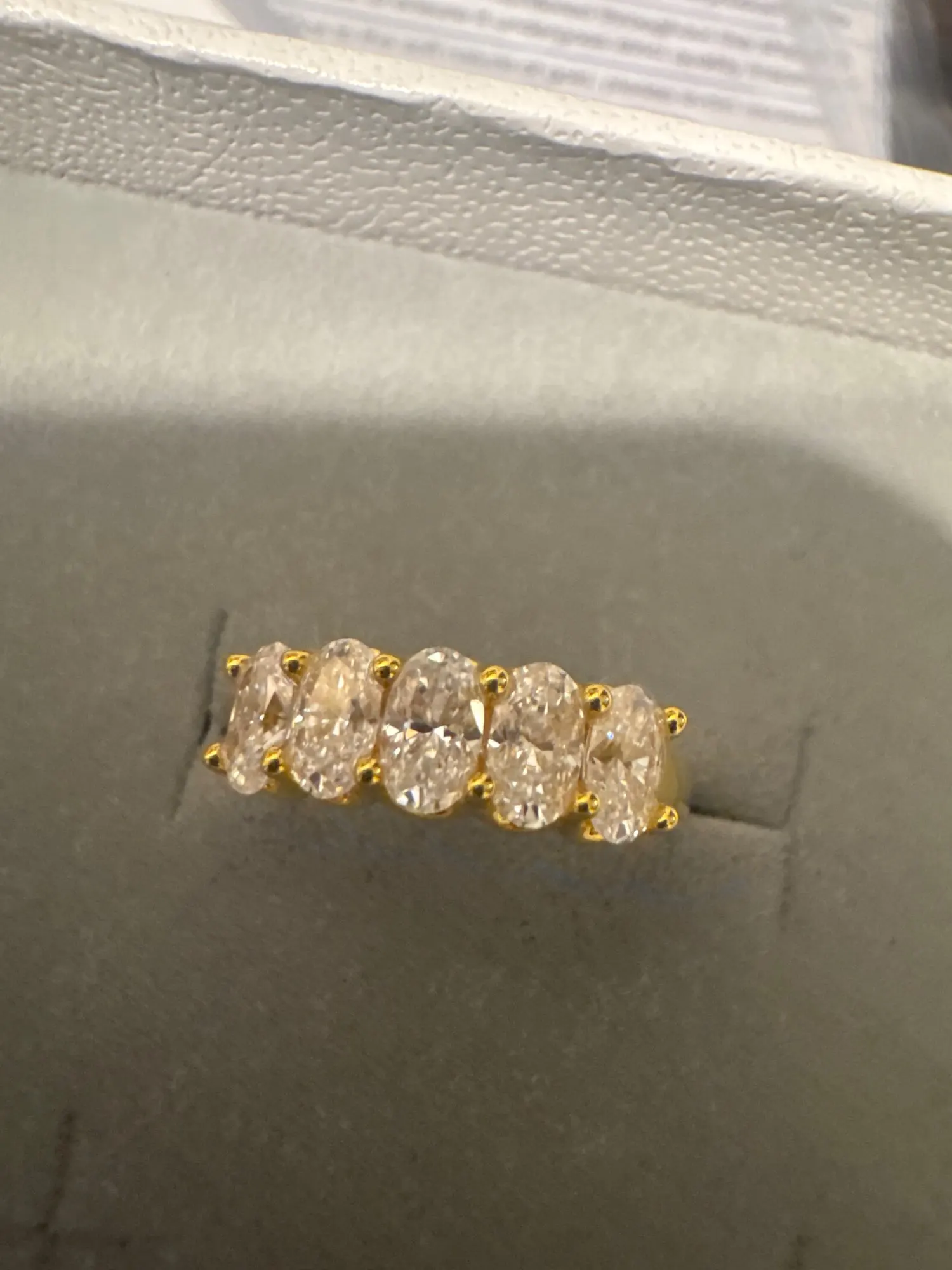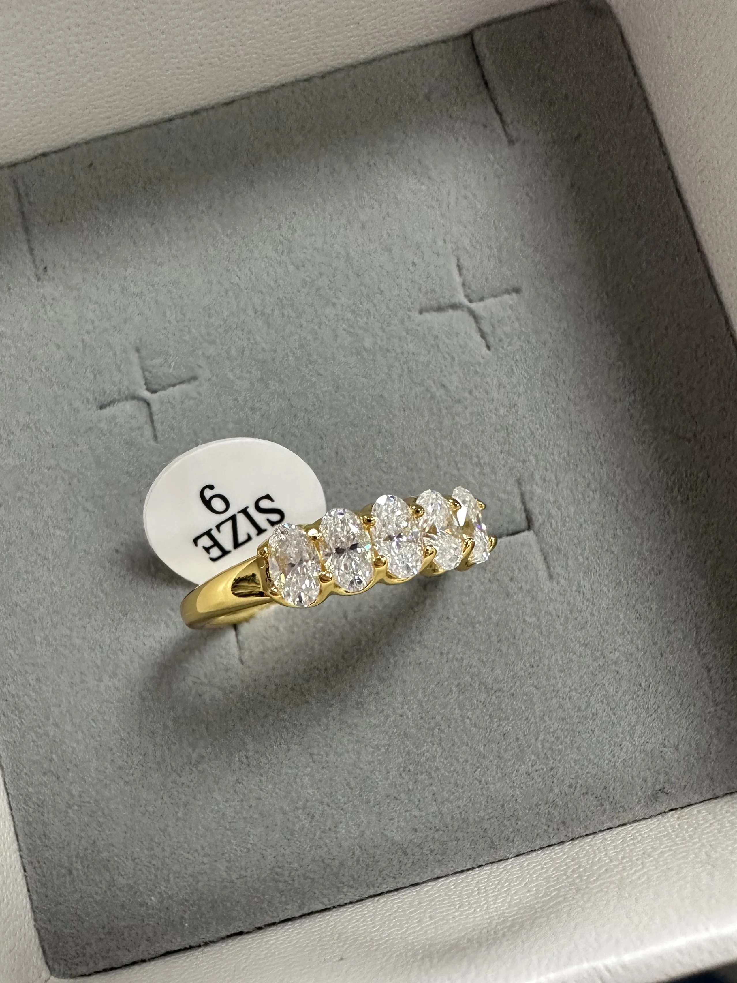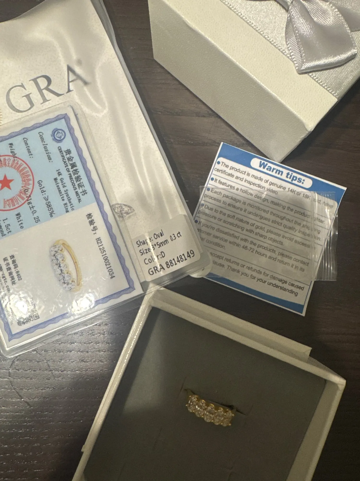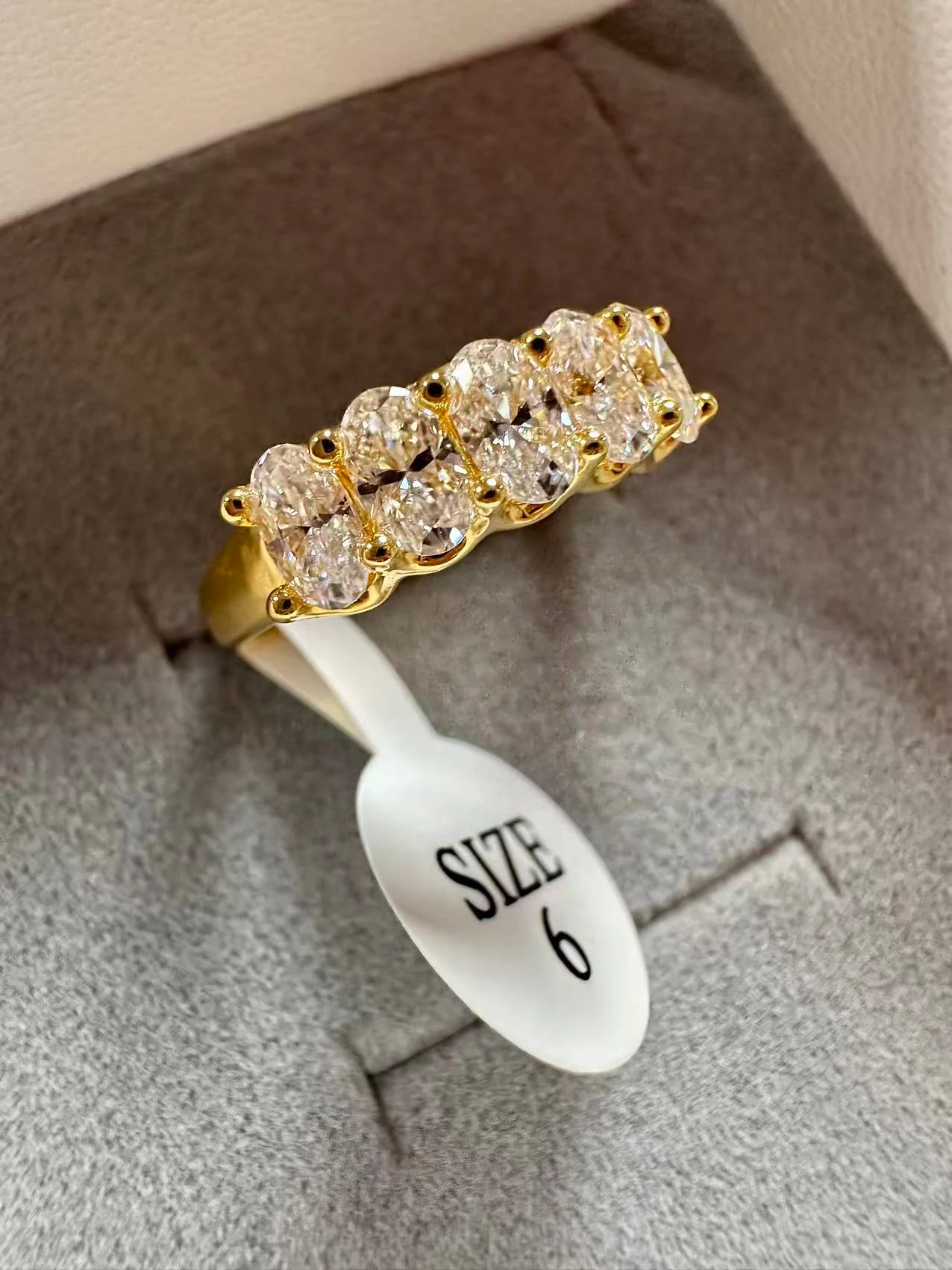 Celebrate eternal love with this 14K Gold Oval Moissanite Wedding Band, a masterpiece of minimalist elegance and timeless brilliance. Crafted from 100% real 14K solid gold (not plated or filled), this band features five perfectly set 3x5mm D-color VVS1 Moissanite stones, totaling 1.5 carats of radiant sparkle.
