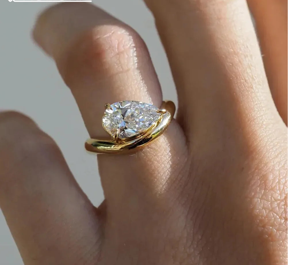 18K Gold Plated East-West Pear Cut Moissanite Ring – 1.5CT / 3CT Pinky Ring