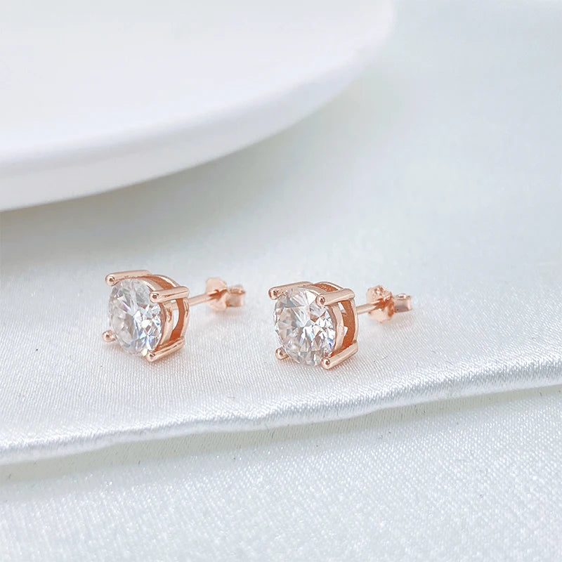 18k Gold Plated Round Shape Moissanite Stud Earrings