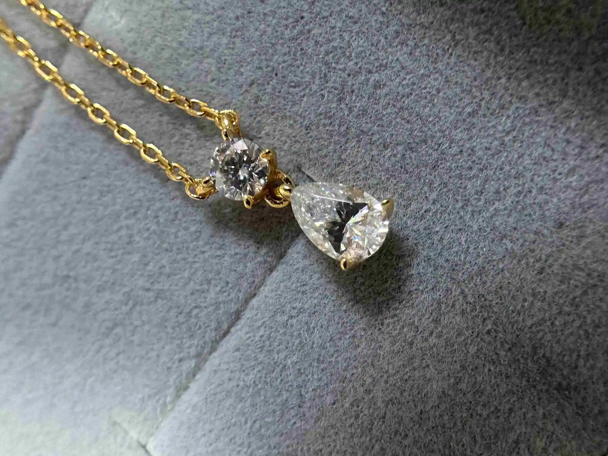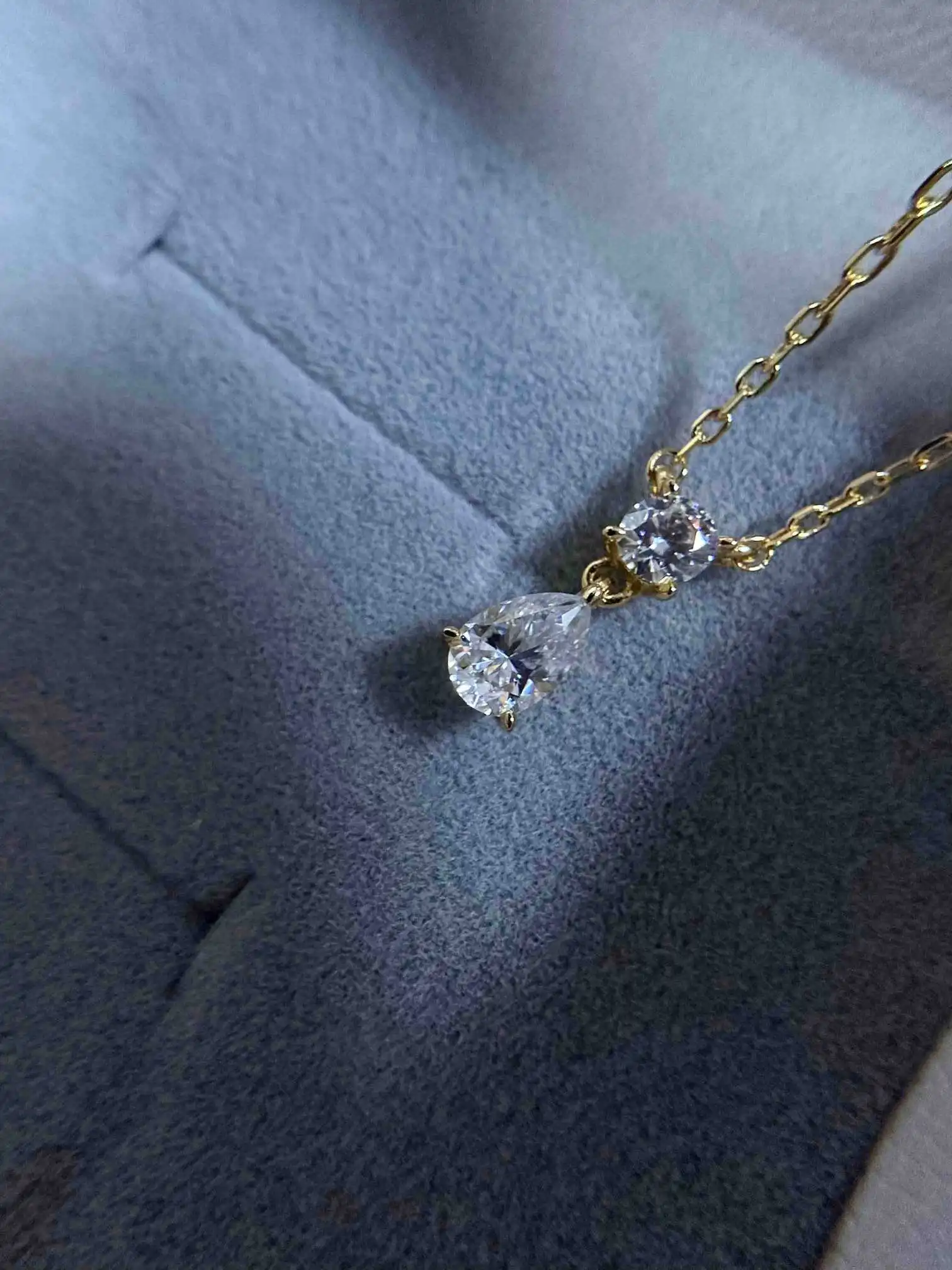 18K Gold Plated Two-Stone Moissanite Necklace – Round & Pear Cut D Color VVS1