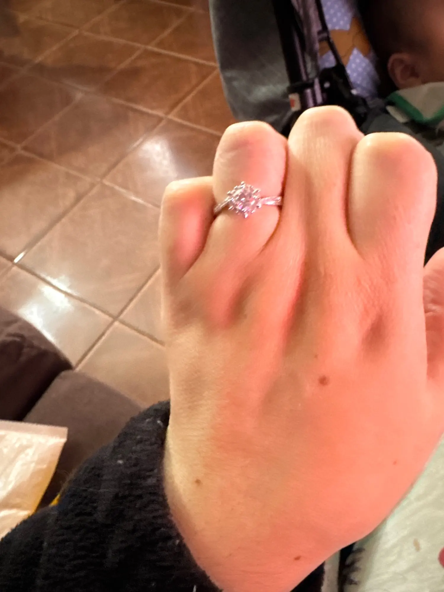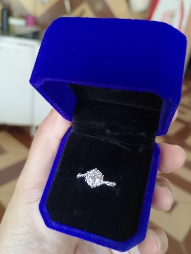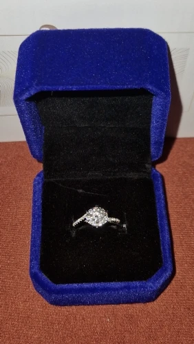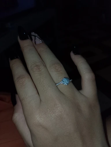 Beautiful! Large but still not exaggerated, shines beautifully. It came packed in a string bag and a decorative navy blue box. Additionally, there is a cleaning cloth and a certificate for the moissanite. Due to its size, the stone stands out quite strongly, which doesn't always suit me, but here it's okay! I bought it thanks to the Aliexpress Polska group.