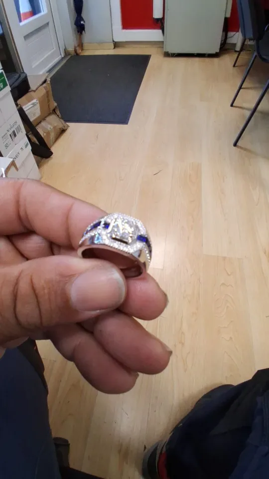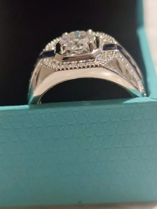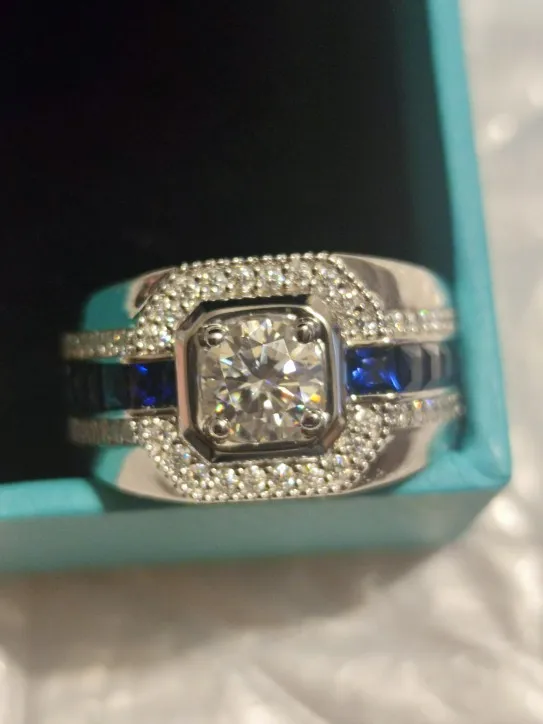 Command attention with brilliance and craftsmanship in this 2.68CT Men’s Moissanite Ring, expertly designed for those who appreciate bold style and timeless elegance. At the heart of this ring is a dazzling 6.5mm (1CT) D-color moissanite, framed by 48 micro-set 1.3mm stones and 10 accent 2.5mm stones—all VVS1 clarity with an excellent cut, creating a total visual impact of 2.68 carats.
