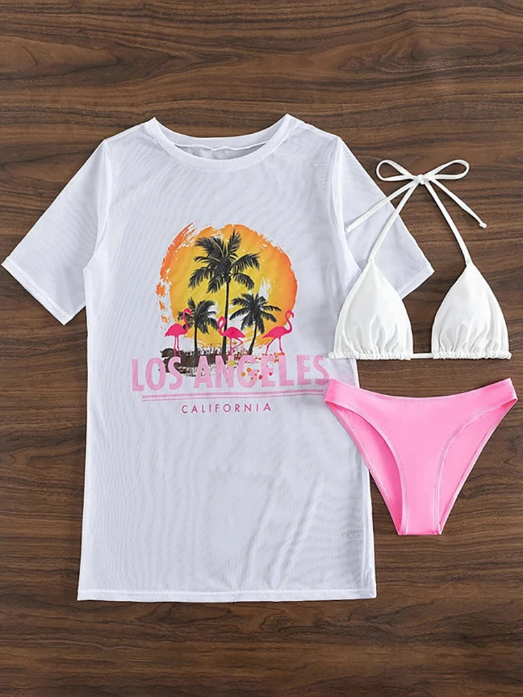 3 Pieces Bikini and T-Shirt Set
