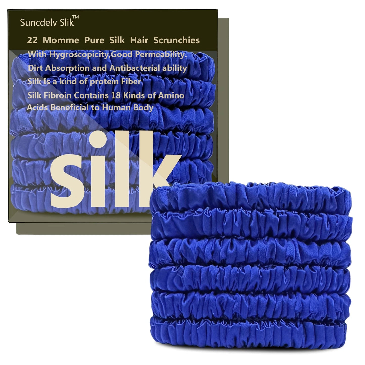 Indulge your hair in luxury with this set of 6 handmade scrunchies crafted from 100% pure Mulberry silk. These hairbands are not just a stylish accessory but a gentle and nourishing choice for your hair. Mulberry silk is renowned for its smooth texture and natural sheen, making these scrunchies ideal for reducing hair friction and preventing breakage, ensuring your hair stays healthy and glossy.