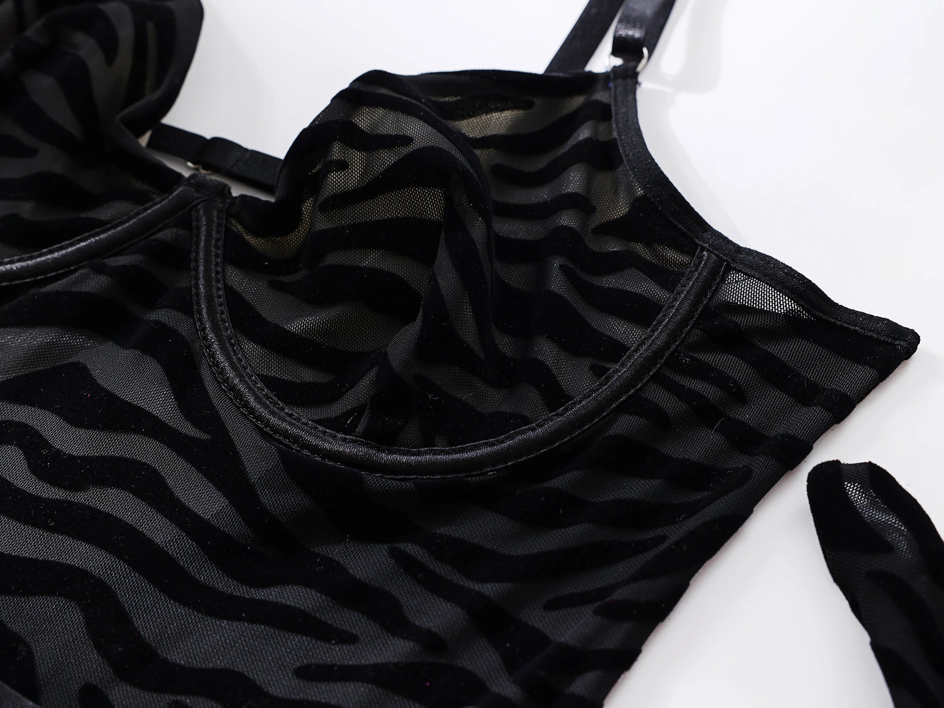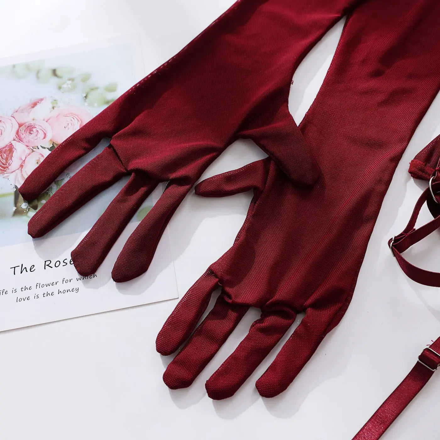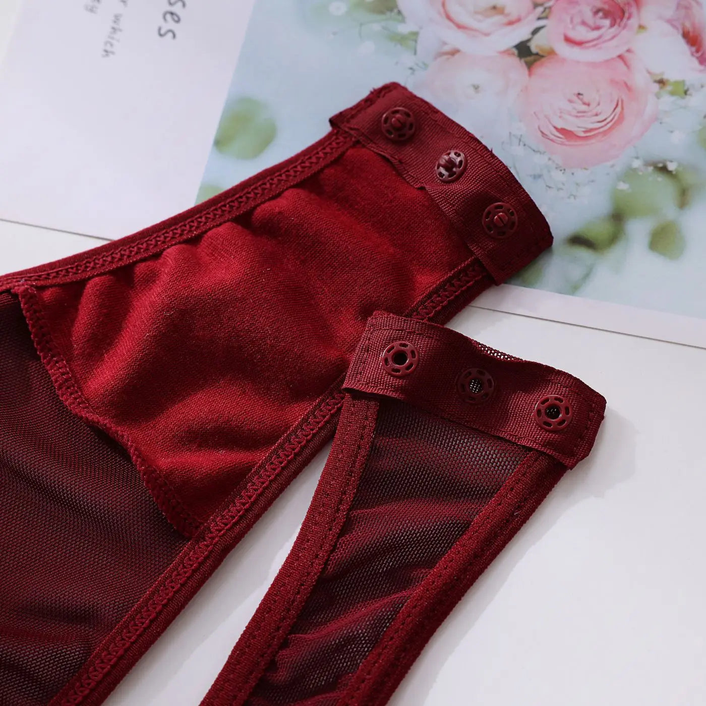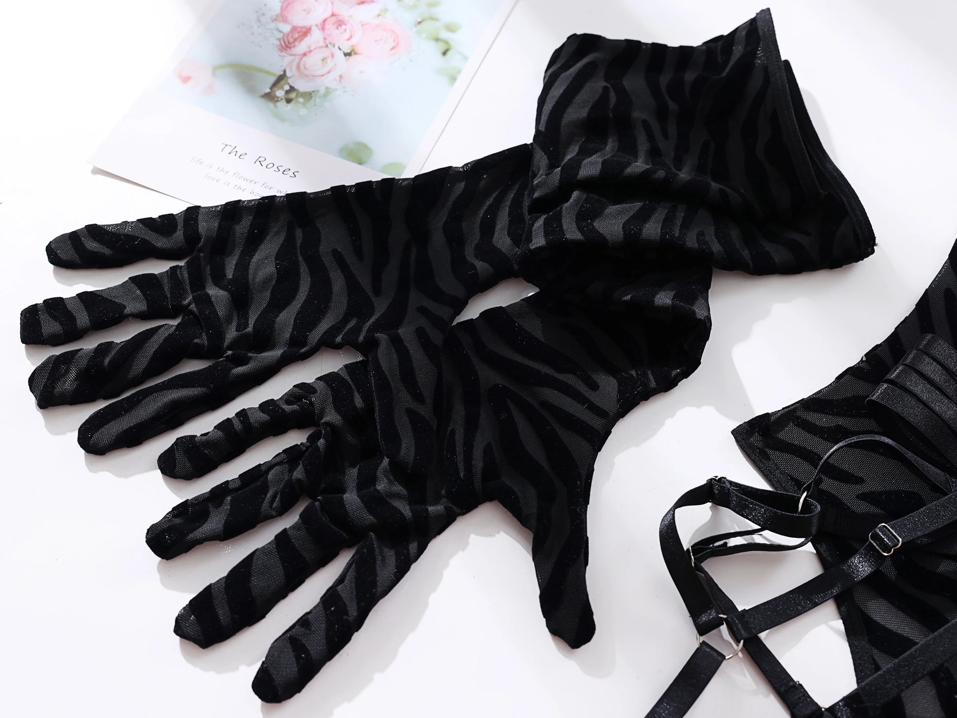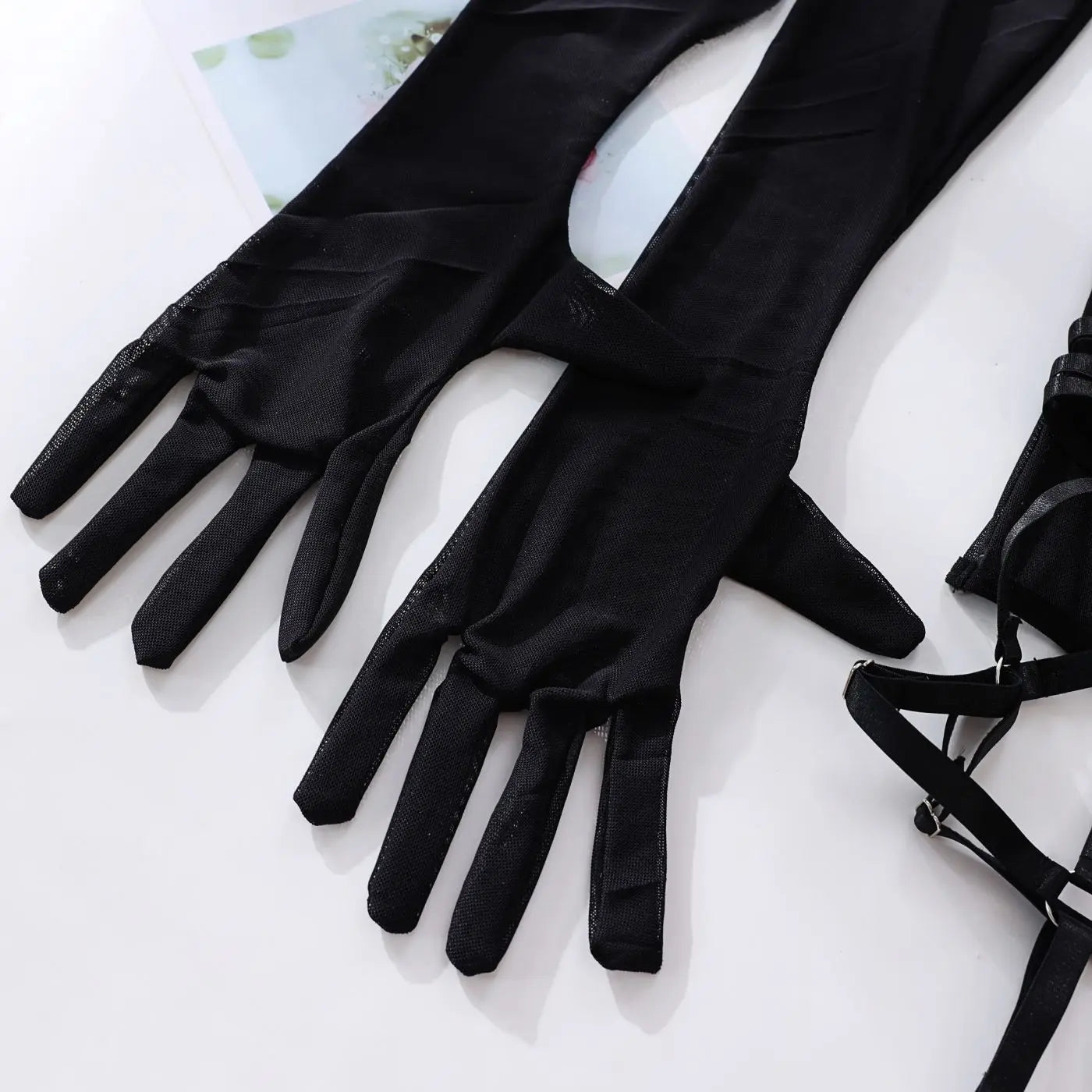 6 Pcs Lace Bodysuit Lingerie Set With Gloves, Leg and Waist Straps - Lingerie Bodysuit