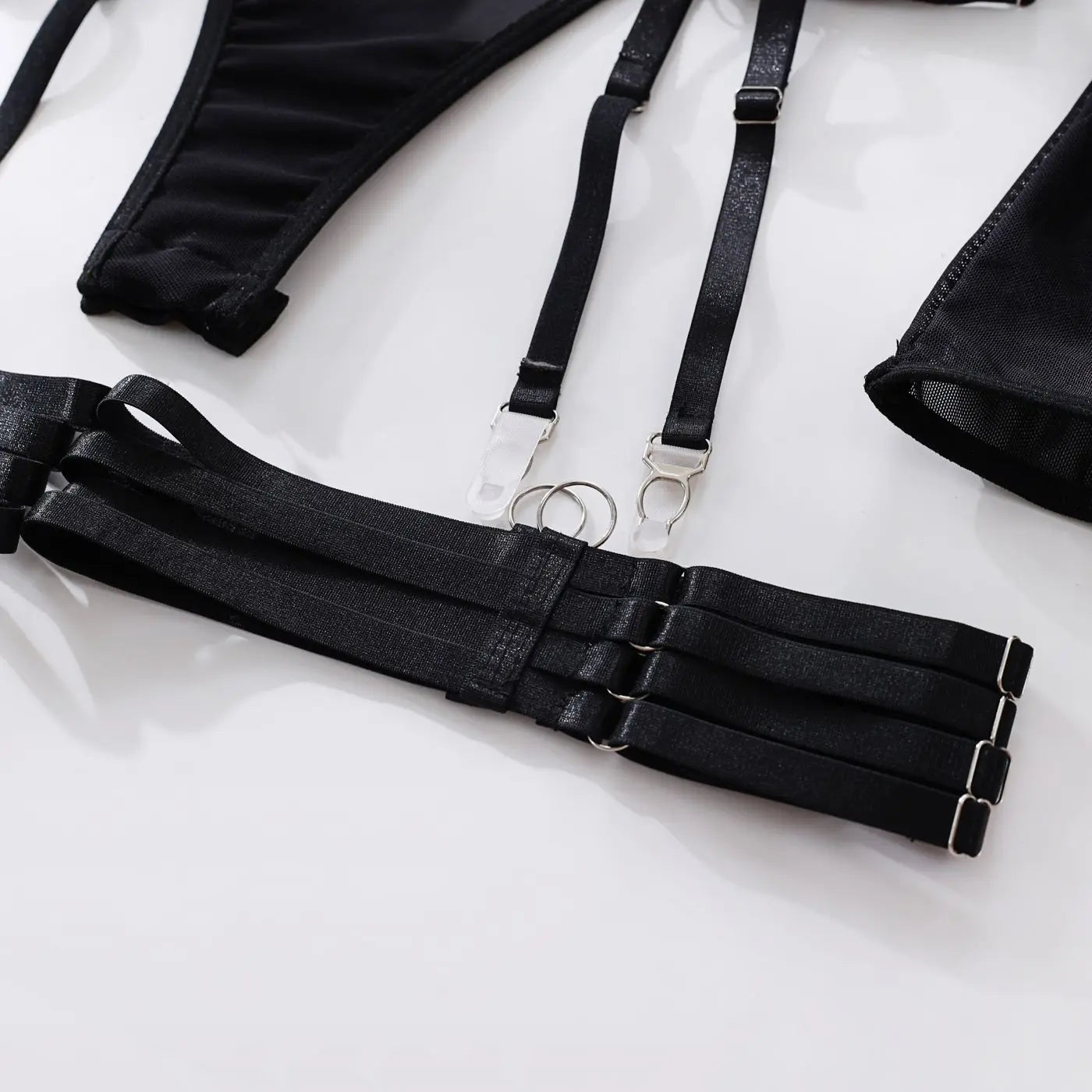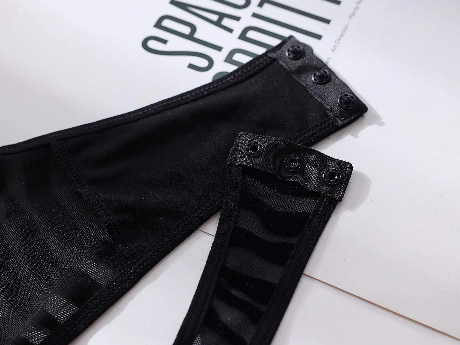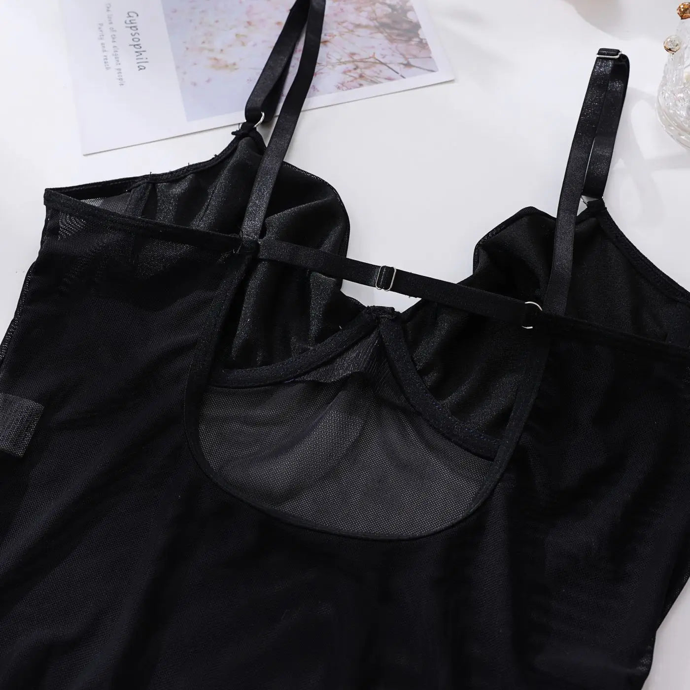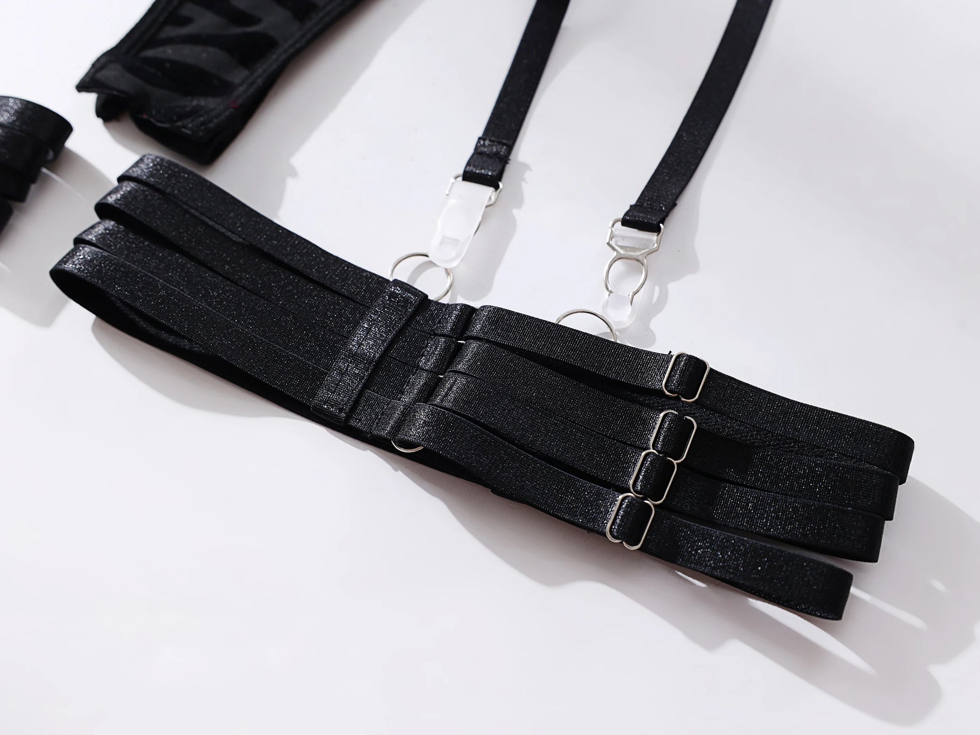 Discover the allure of our 6-Piece Lace Bodysuit Lingerie Set, designed to captivate and empower. This luxurious set includes a beautifully detailed lace bodysuit, gloves, and adjustable leg and waist straps, offering a complete ensemble for sophisticated elegance.