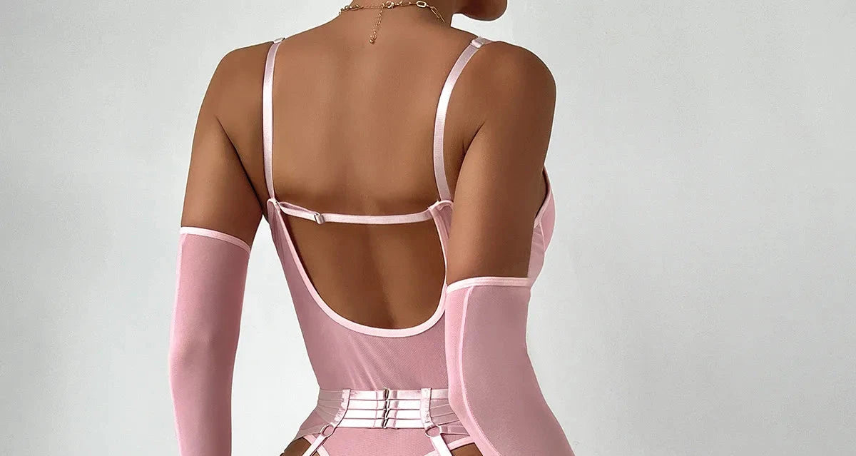 6-Piece Lace Bodysuit Lingerie Set with Gloves, Leg and Waist Straps