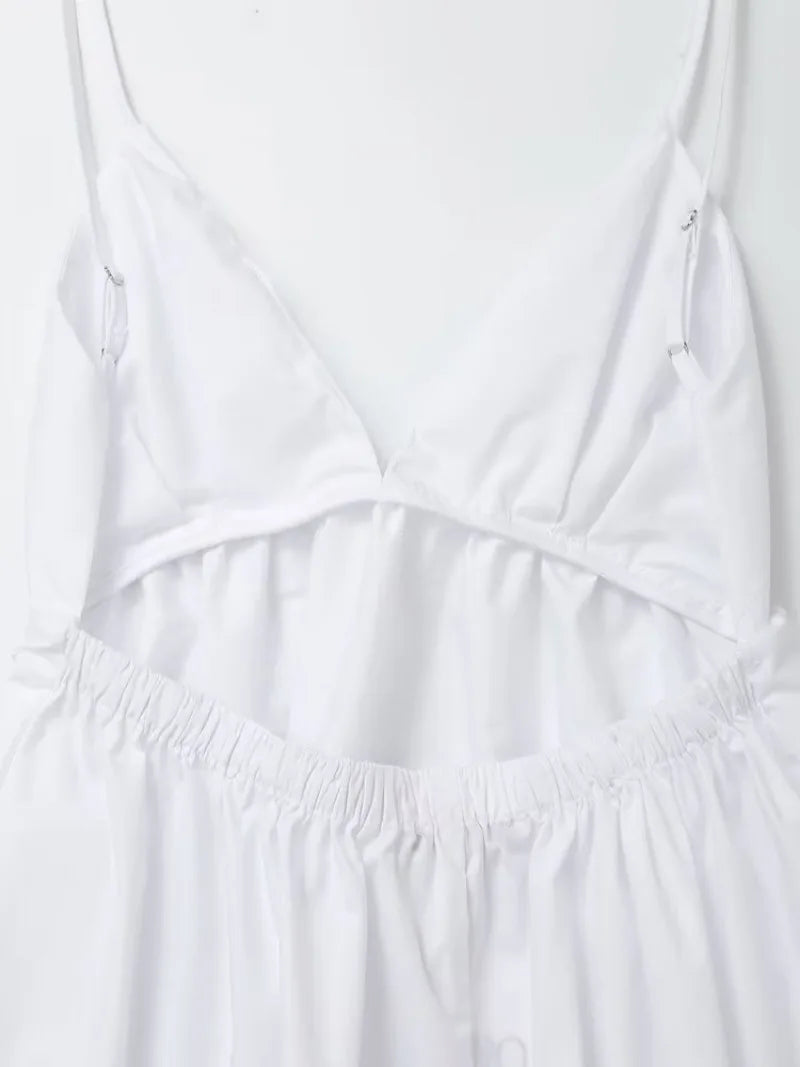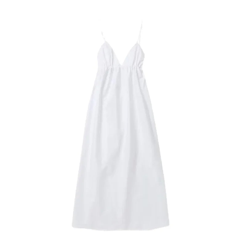 Step into effortless elegance with our Backless V Neckline Maxi White Dress, a perfect blend of sophistication and casual charm. Ideal for beach parties or relaxed daytime outings, this dress offers a timeless look with its flowing silhouette and breezy design.