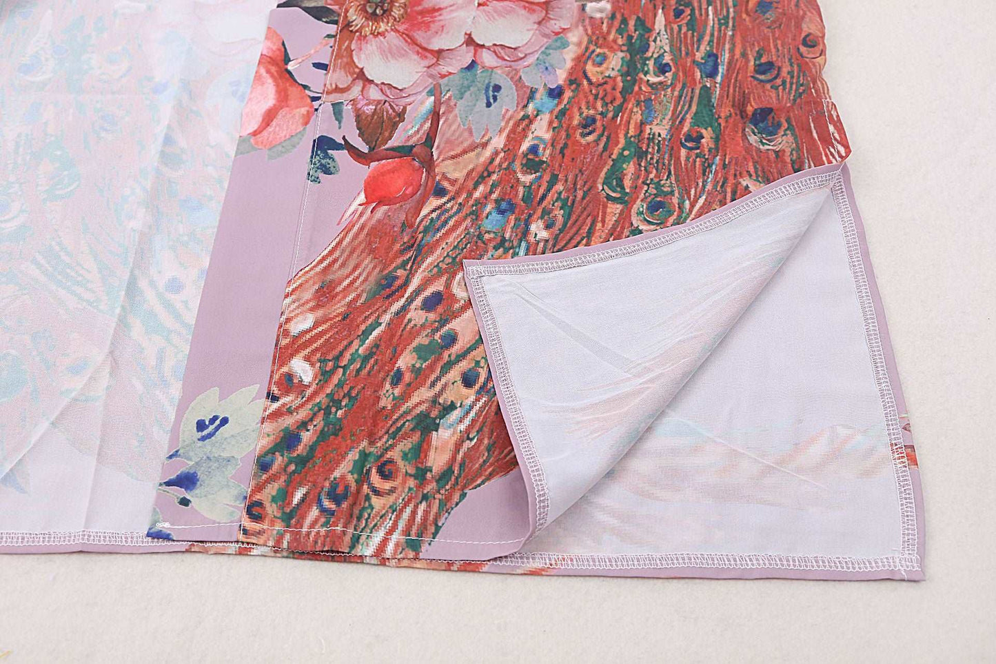 Beach Kimono Peacock Printed Swimsuit Cover Up