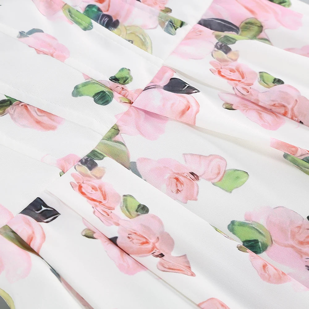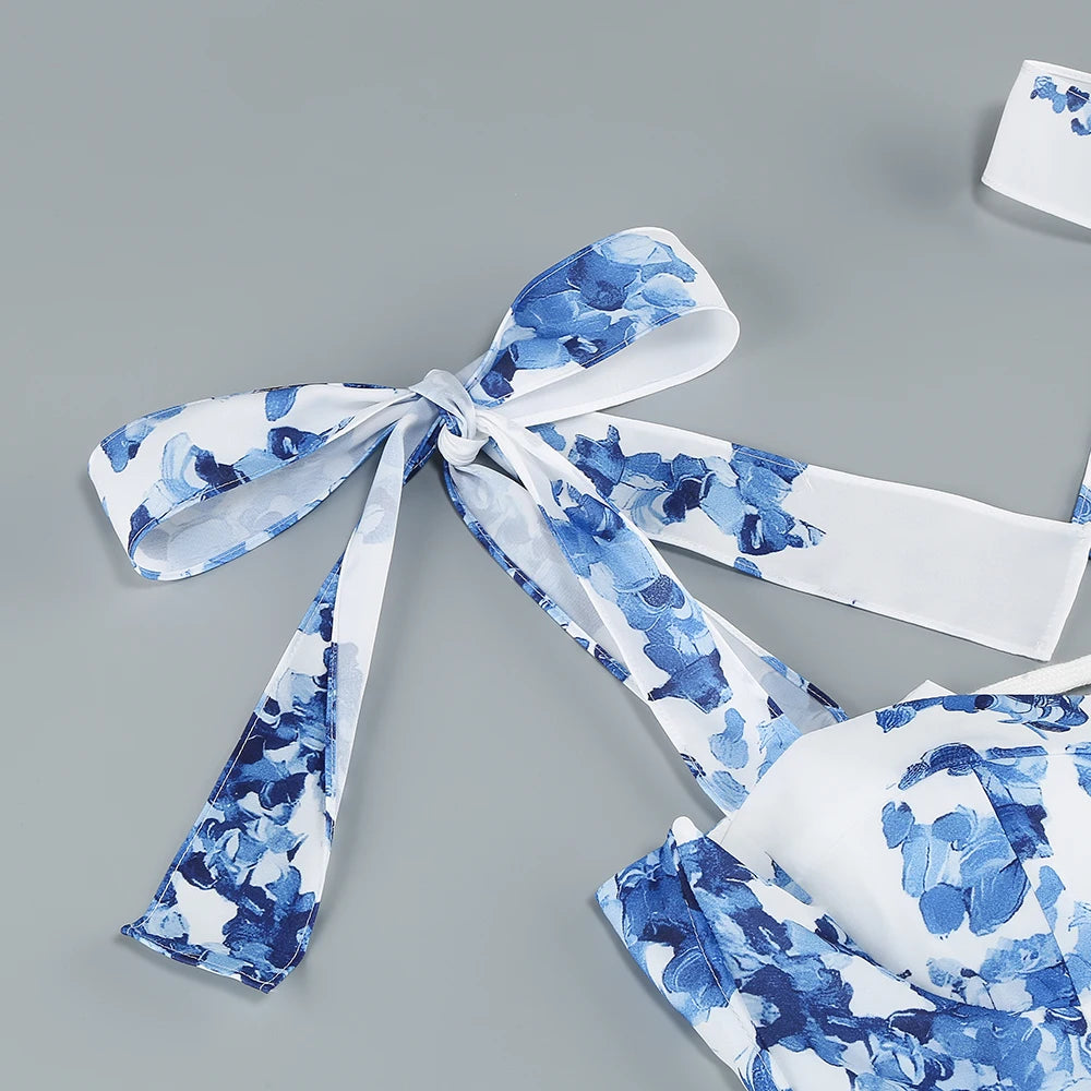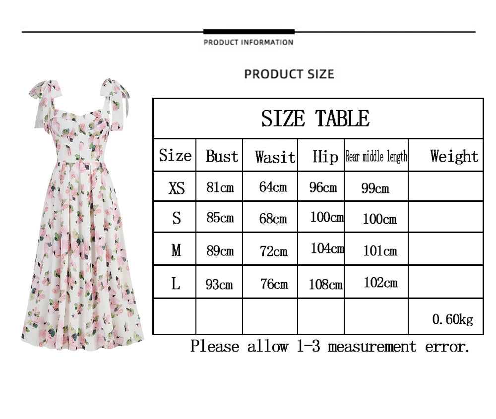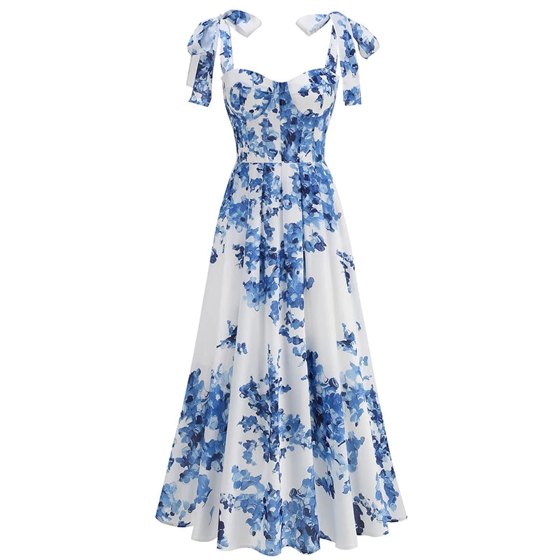 Whimsical and romantic, this Corset Floral Print A-Line Dress is designed to flatter and charm. Featuring a structured corset-style bodice and wide ribbon bow straps, it blends vintage-inspired femininity with modern elegance. The vibrant floral print adds a lively, graceful touch to this mid-calf silhouette, making it perfect for sunny days and special moments.
