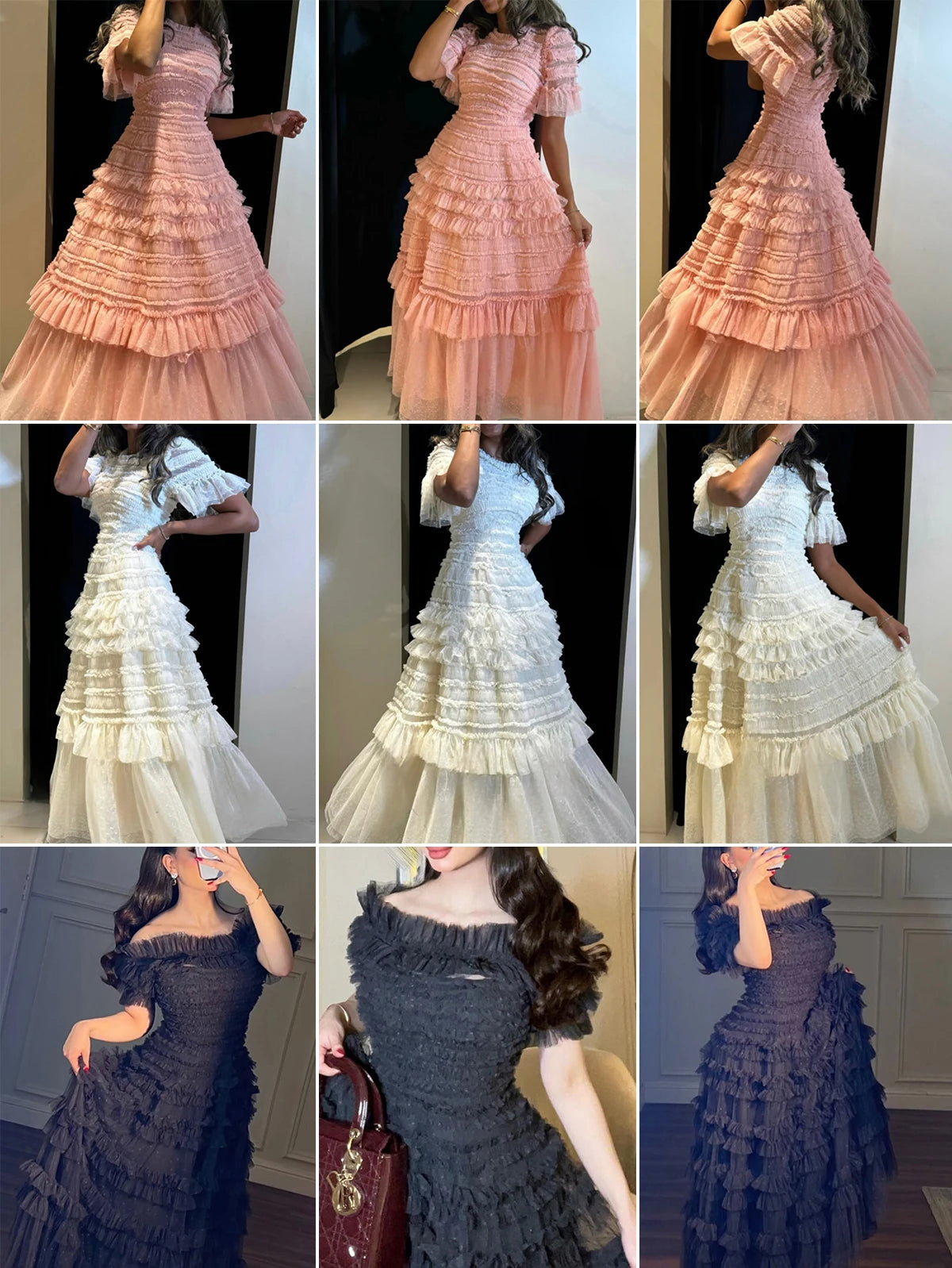 - Layered Design: The dress features a beautifully layered skirt that adds depth and movement, creating a stunning visual effect as you walk.