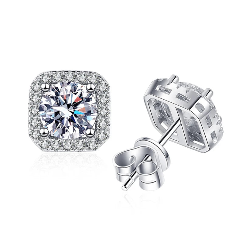 D Color Square Moissanite Stud Earrings