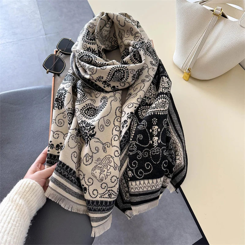 Why You’ll Love It: The Double-Sided Cashmere Thick Pashmina Scarf is designed for those who value both style and comfort. Its reversible feature and thick cashmere imitation fabric ensure you stay warm and chic through every season. Whether you're dressing up or down, this scarf is the perfect accessory to elevate your look.