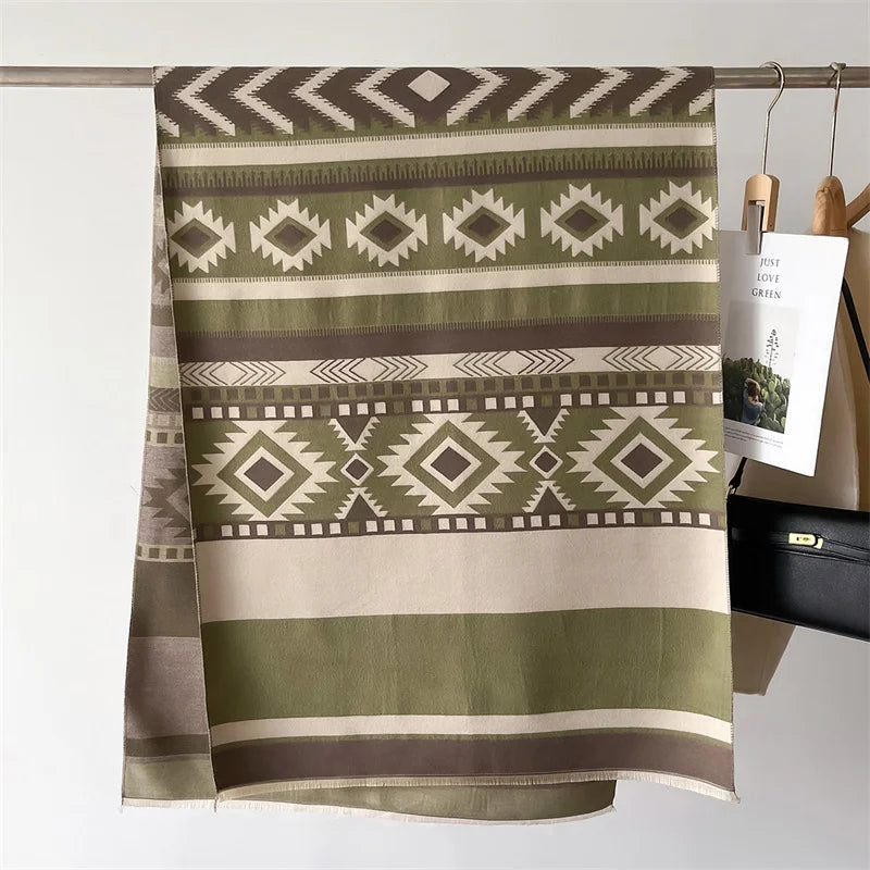 Upgrade your winter wardrobe with the Double-Sided Geometric Print Cashmere Pashmina Scarf. Order today for a blend of stylish design and cozy warmth!