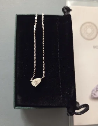 Graceful and radiant, this Pear Cut Solitaire Moissanite Necklace captures the essence of timeless femininity. Handcrafted from 925 sterling silver and plated in 18K gold, this piece features a dazzling D color, VVS1 clarity Moissanite that mirrors the brilliance of a natural diamond.