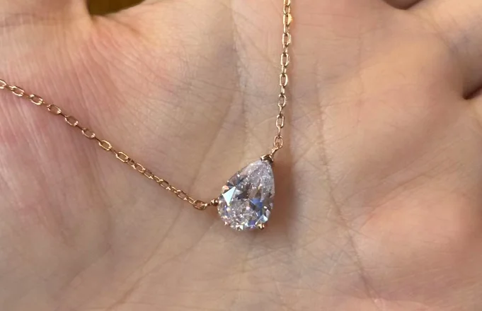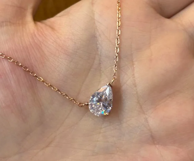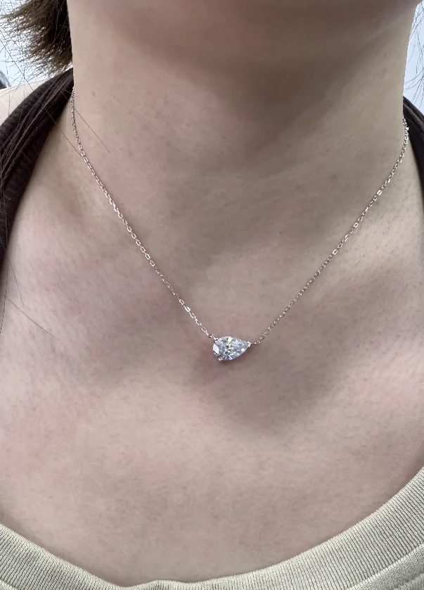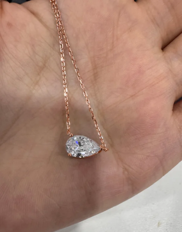East-West Pear Cut Moissanite 18K Gold Plated Necklace – Christmas Gift for Her