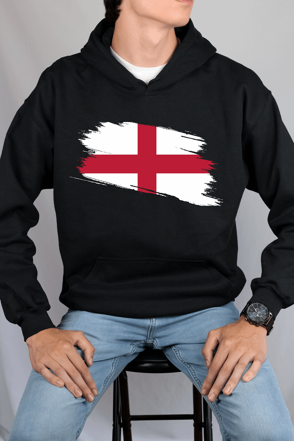 Featuring a bold and striking England flag print on the front, this hoodie is perfect for showing off your pride and support for your country. The high-quality print is vibrant and long-lasting, ensuring that it will look great even after multiple washes. The classic design of the hoodie makes it perfect for everyday wear, whether you're running errands around town or hanging out with friends.