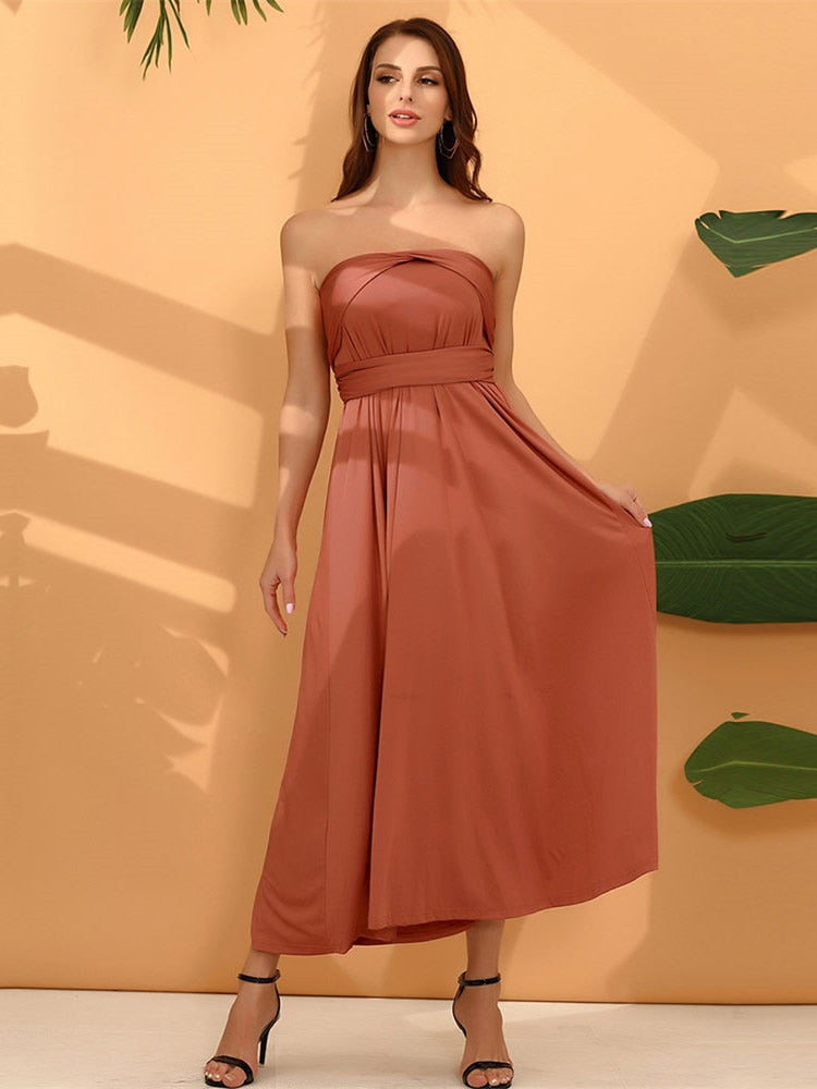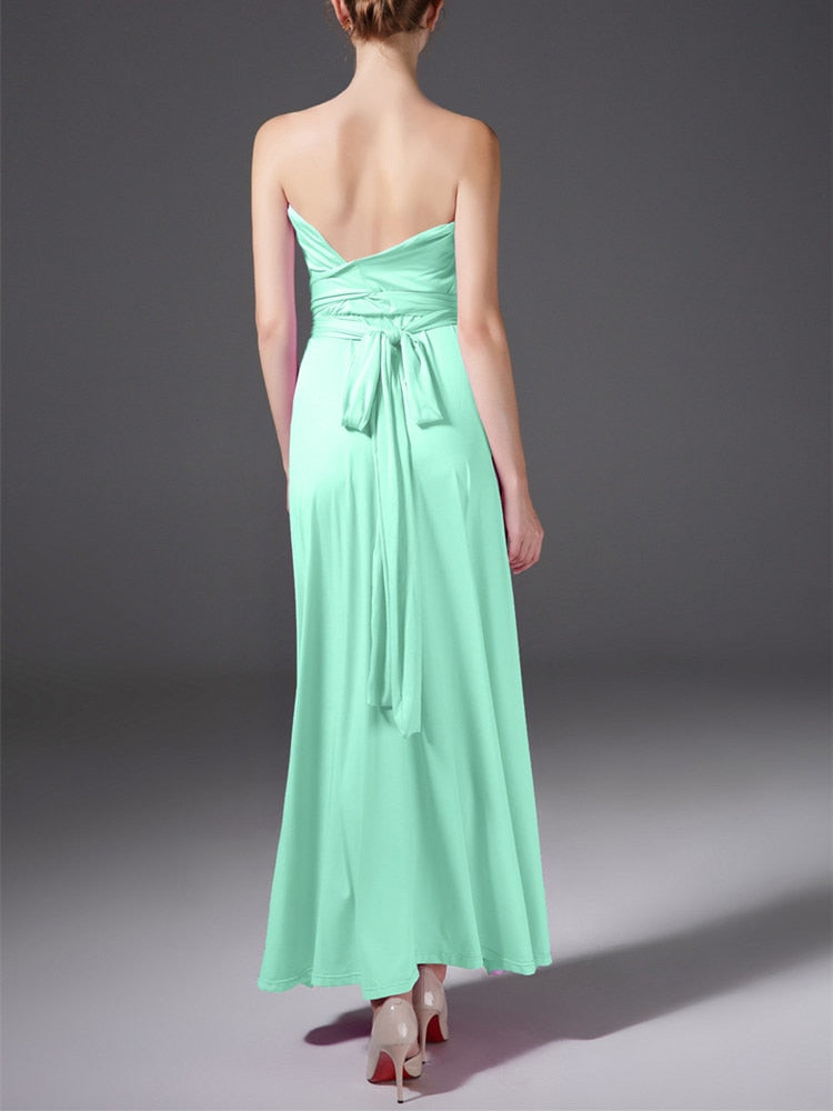 Introducing the epitome of elegance and versatility, the Floor Length Maxi Wrap Convertible Infinity Bridesmaid Multiway Dress. This remarkable gown transcends conventional fashion boundaries, offering a staggering 27 distinct ways to drape and style, ensuring every bridesmaid's individuality is celebrated while maintaining a cohesive ensemble.