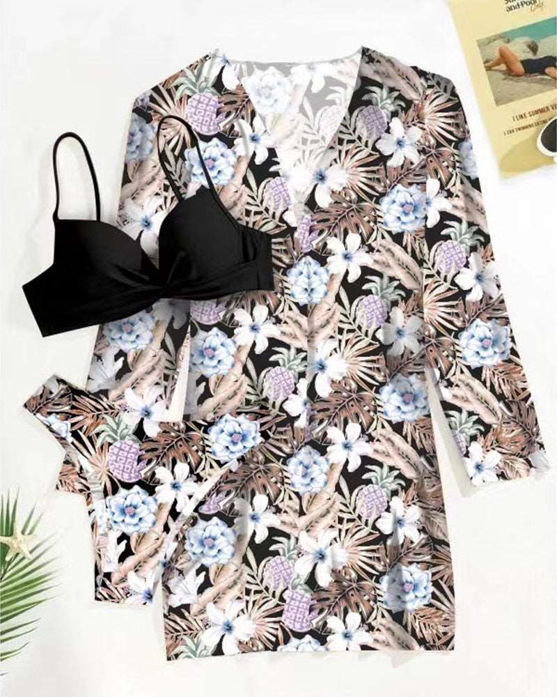 Our Floral 3 Pieces Low Waist Bikini Set with a Matching Cover-up Kimono is a captivating ensemble that effortlessly combines fashion-forward design with comfort and versatility. Embrace the summer season in style and make a stunning impression wherever you choose to bask in the sun.