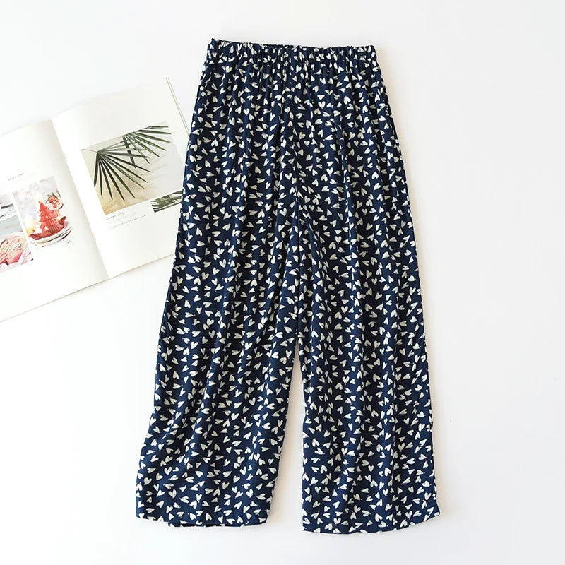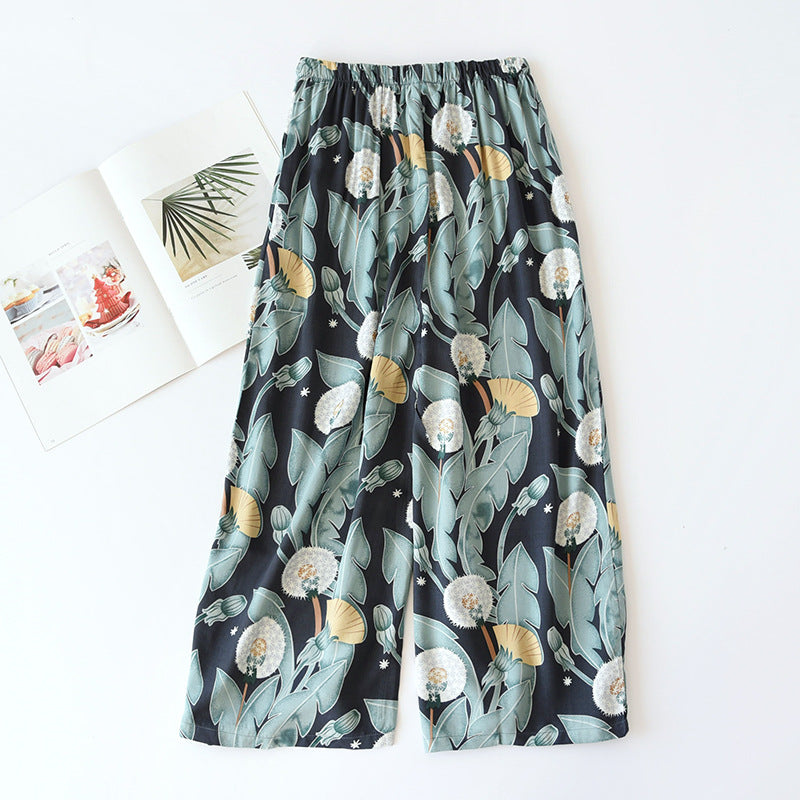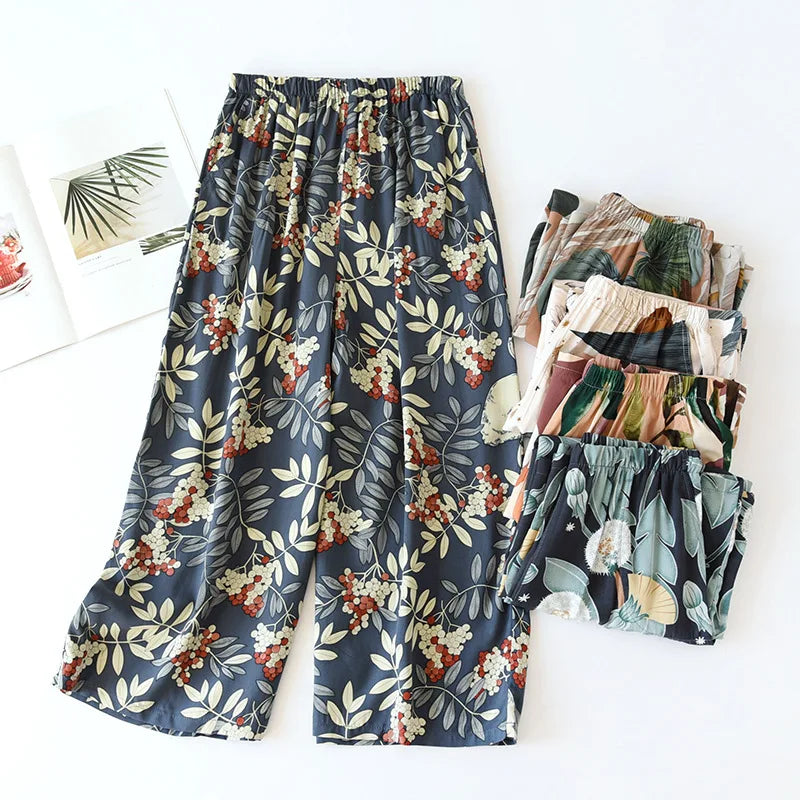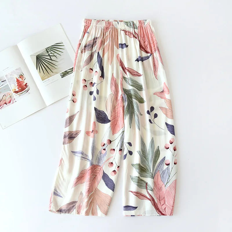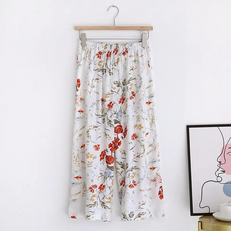 Floral Wide Leg Pajama Bottoms Women's Casual Palazzo Culottes