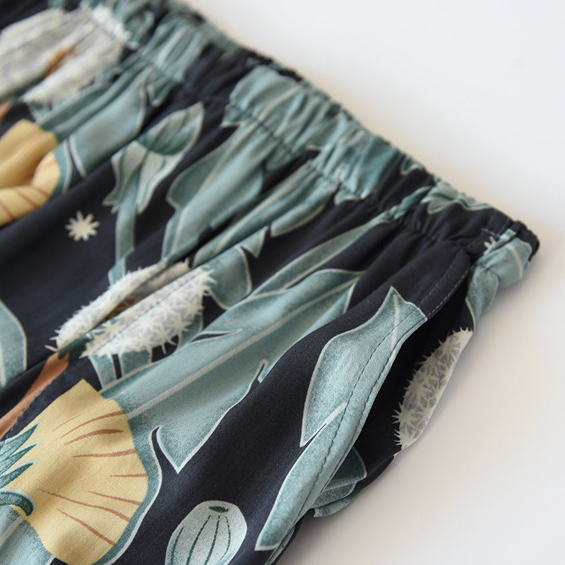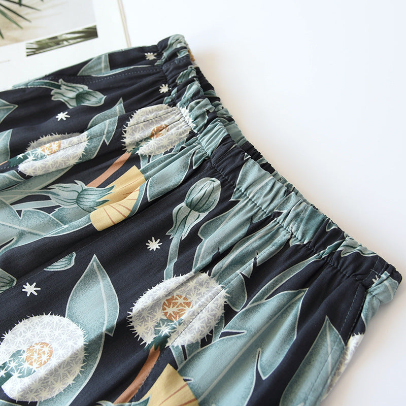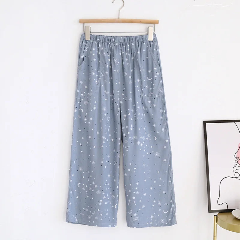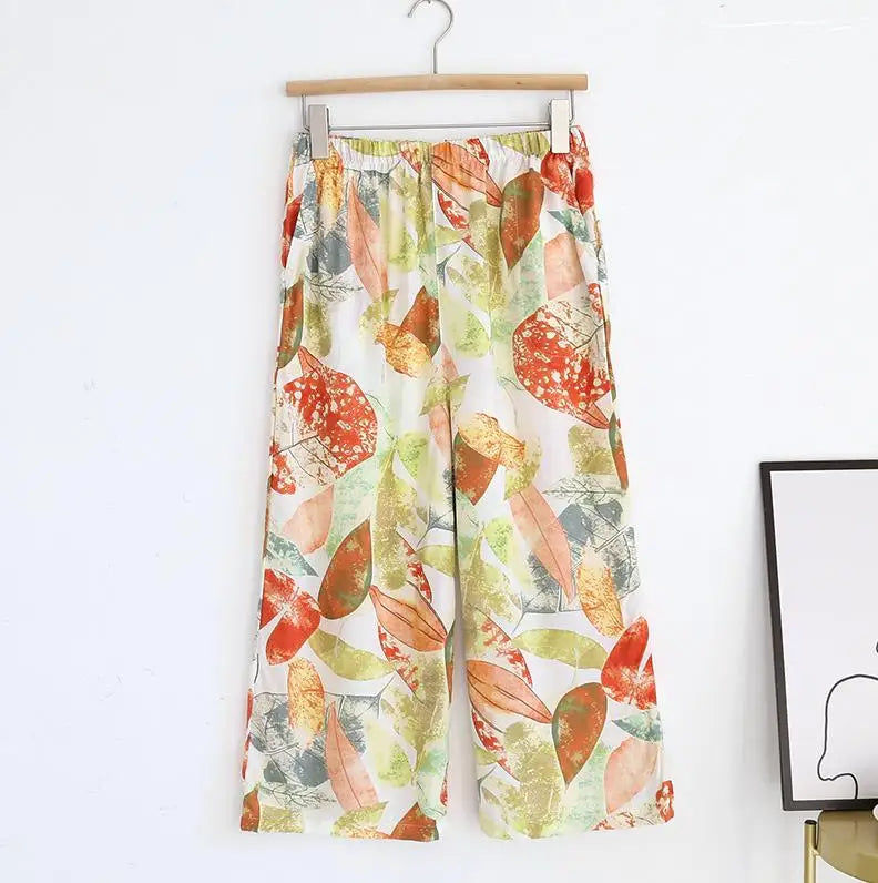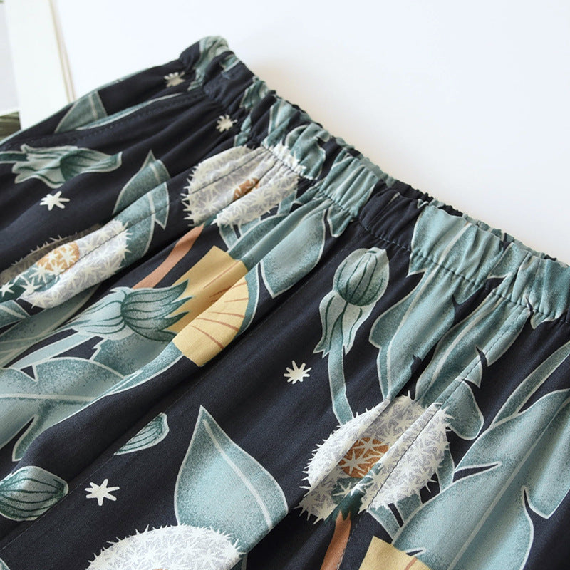 Floral Wide Leg Pajama Bottoms Women's Casual Palazzo Culottes